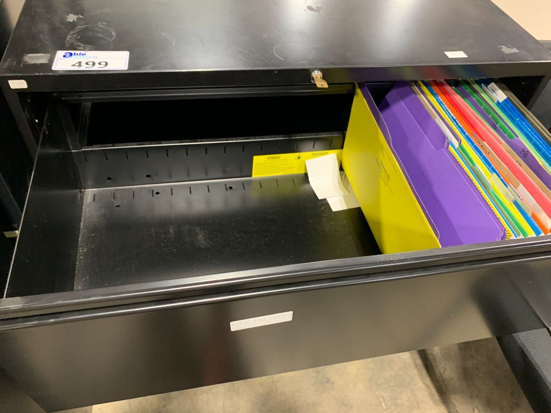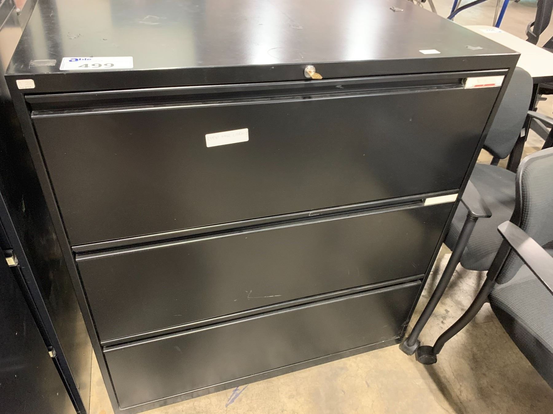*L* BLACK 3 DRAWER LATERAL FILE CABINET *LOCATED IN LANGLEY 19757 92A AVE. REMOVAL ONLY THURS SEPT 7 & FRI SEPT 8 9AM - 4:30PM*