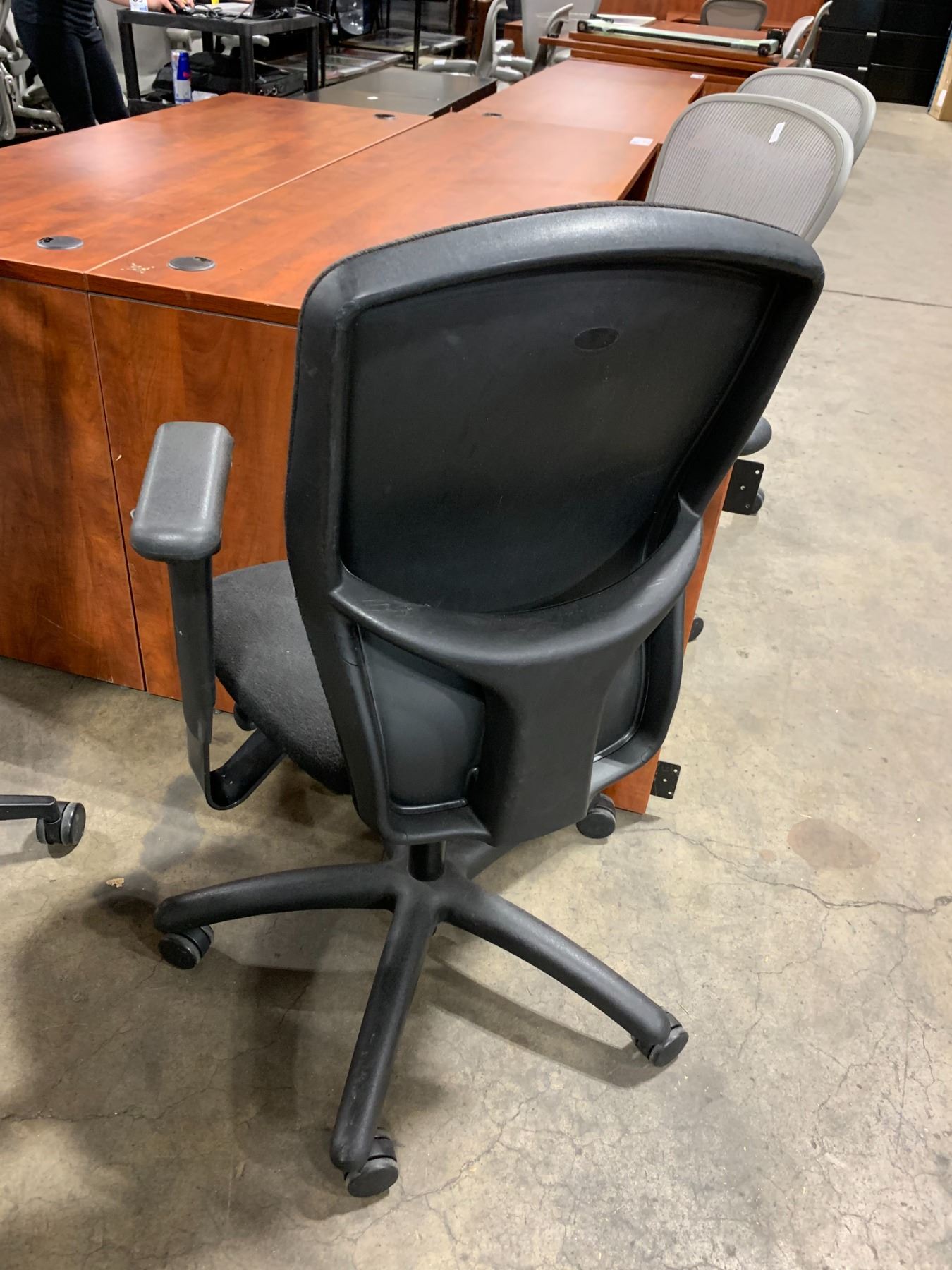 *L* BLACK ERGONOMIC TASK CHAIR WITH ARMS & ADJUSTABLE BACK *LOCATED IN LANGLEY 19757 92A AVE. REMOVAL ONLY THURS SEPT 7 & FRI SEPT 8 9AM - 4:30PM*