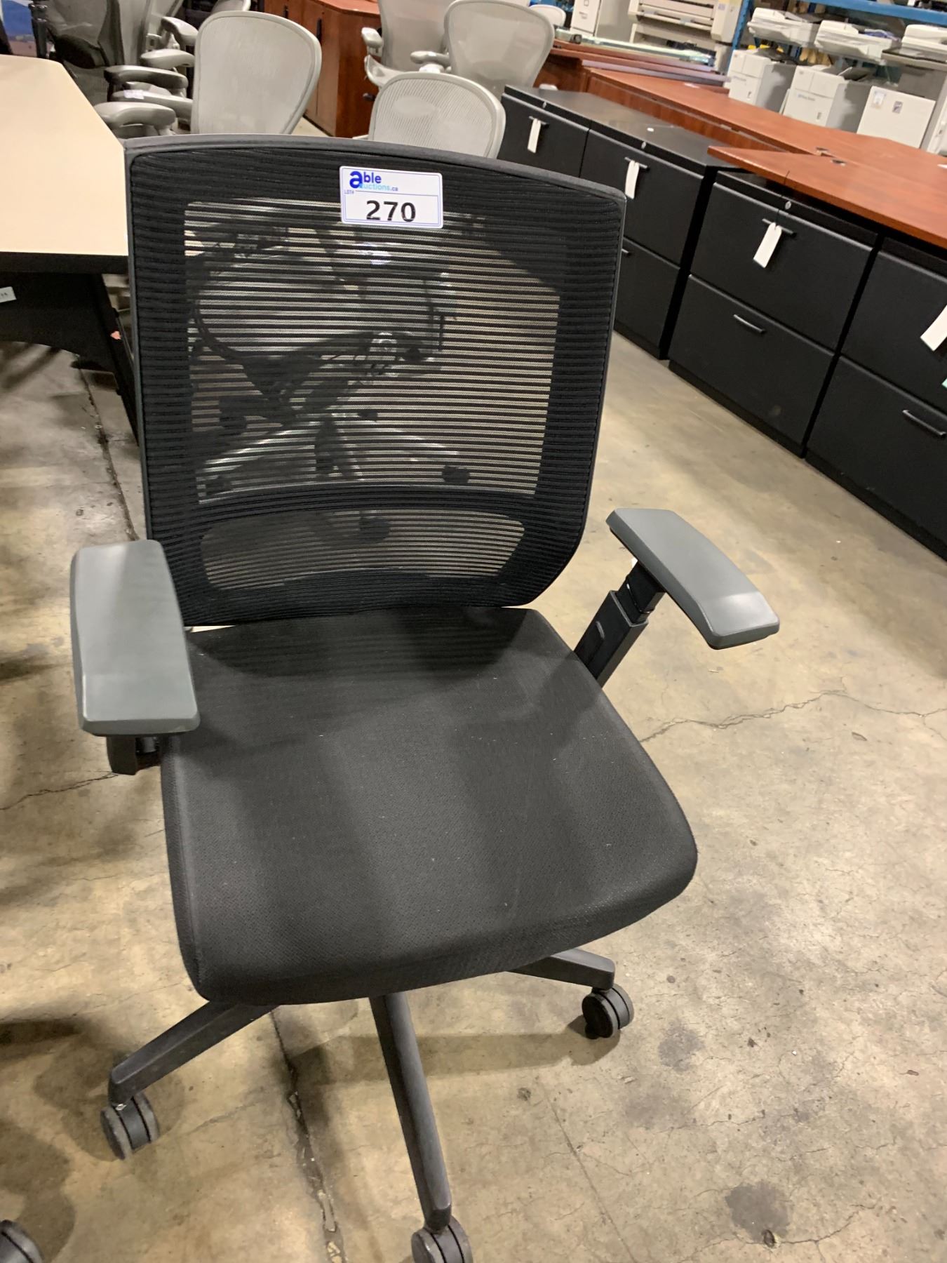 *L* BLACK MESH BACK ERGONOMIC TASK CHAIR STYLE A *LOCATED IN LANGLEY 19757 92A AVE. REMOVAL ONLY THURS SEPT 7 & FRI SEPT 8 9AM - 4:30PM*