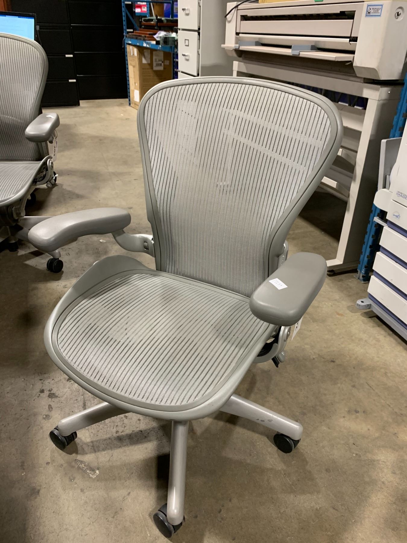 *L* GREY HERMAN MILLER AERON ERGONOMIC TASK CHAIR SIZE MEDIUM - NO LUMBAR SUPPORT *LOCATED IN LANGLEY 19757 92A AVE. REMOVAL ONLY THURS SEPT 7 & FRI SEPT 8 9AM - 4:30PM*