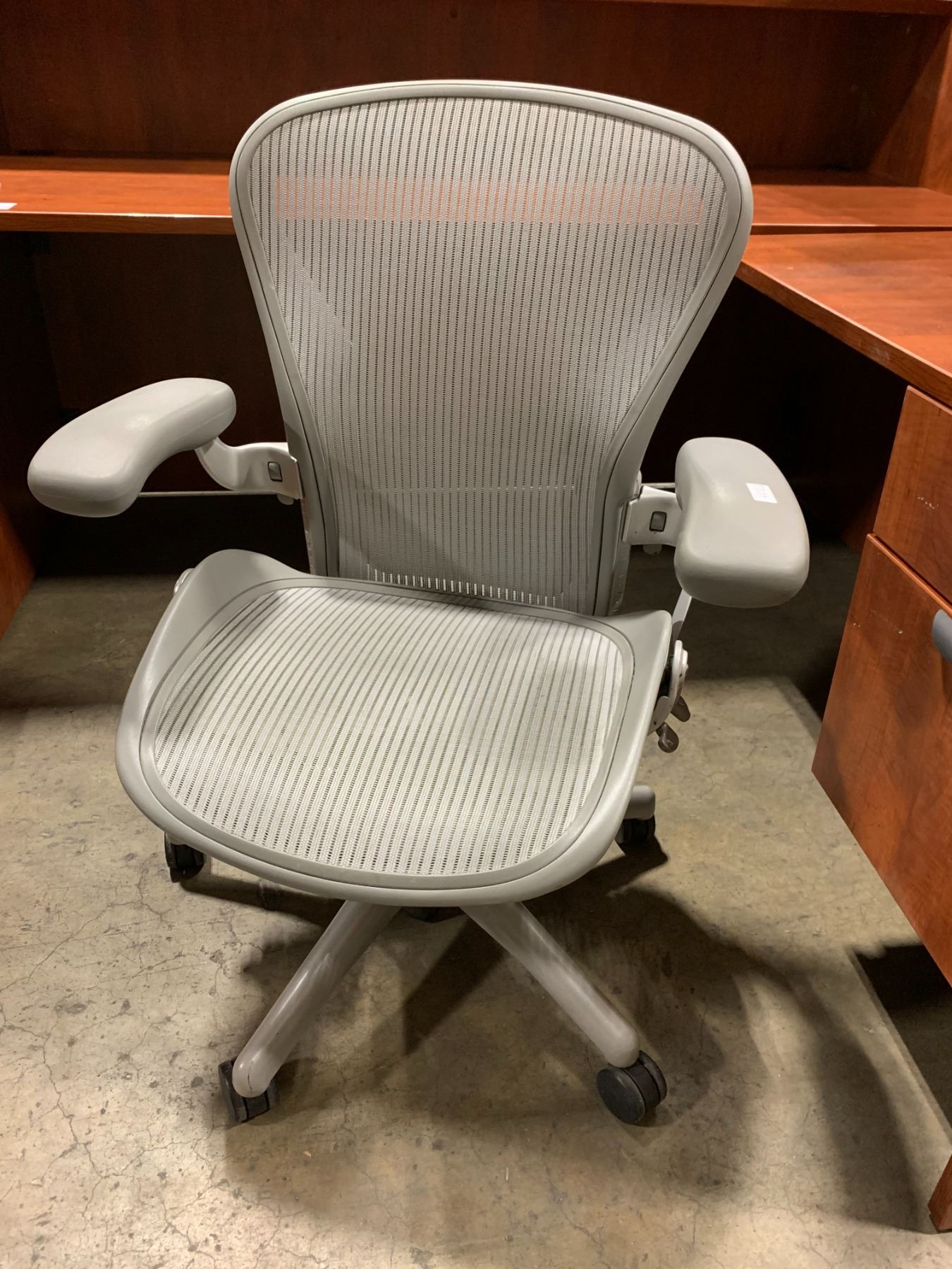 *L* GREY HERMAN MILLER AERON ERGONOMIC TASK CHAIR SIZE MEDIUM - NO LUMBAR SUPPORT *LOCATED IN LANGLEY 19757 92A AVE. REMOVAL ONLY THURS SEPT 7 & FRI SEPT 8 9AM - 4:30PM*