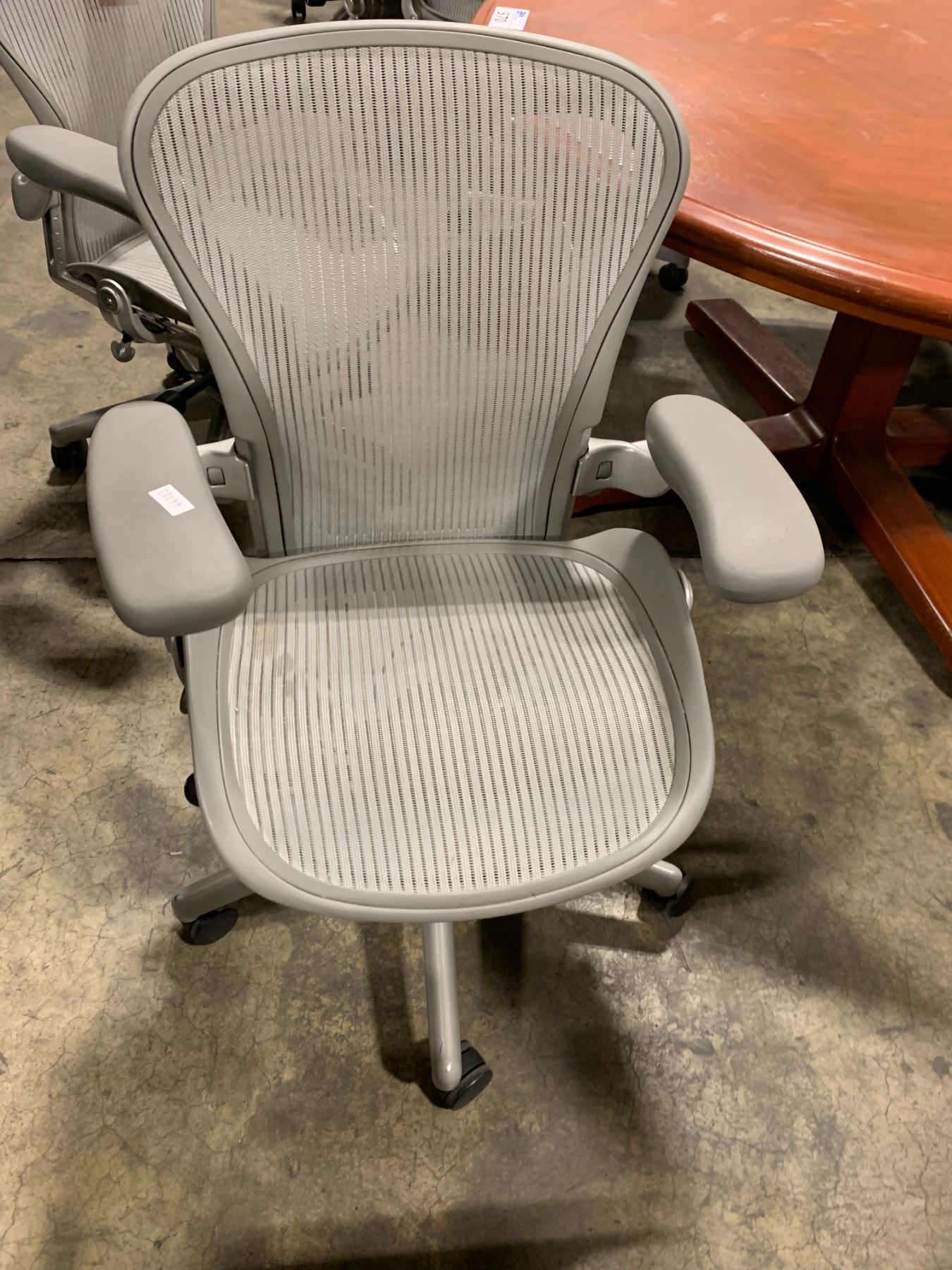 *L* GREY HERMAN MILLER AERON ERGONOMIC TASK CHAIR SIZE SMALL - NO LUMBAR SUPPORT *LOCATED IN LANGLEY 19757 92A AVE. REMOVAL ONLY THURS SEPT 7 & FRI SEPT 8 9AM - 4:30PM*