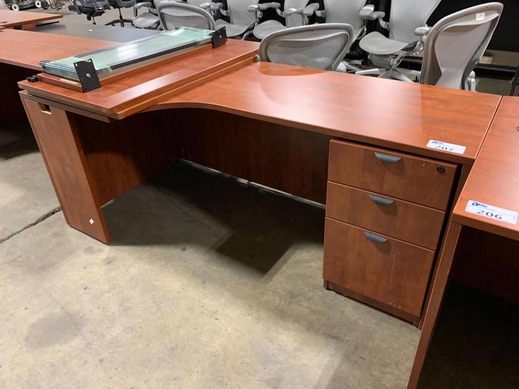*L* L SHAPED 3 DRAWER CHERRY DESK *LOCATED IN LANGLEY 19757 92A AVE. REMOVAL ONLY THURS SEPT 7 & FRI SEPT 8 9AM - 4:30PM*