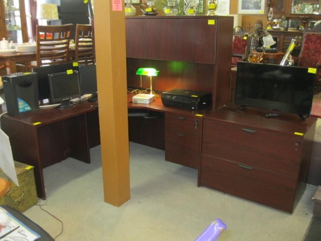 L-SHAPED SECTIONAL DESK W/UPPER HUTCH & 2 DRAWER