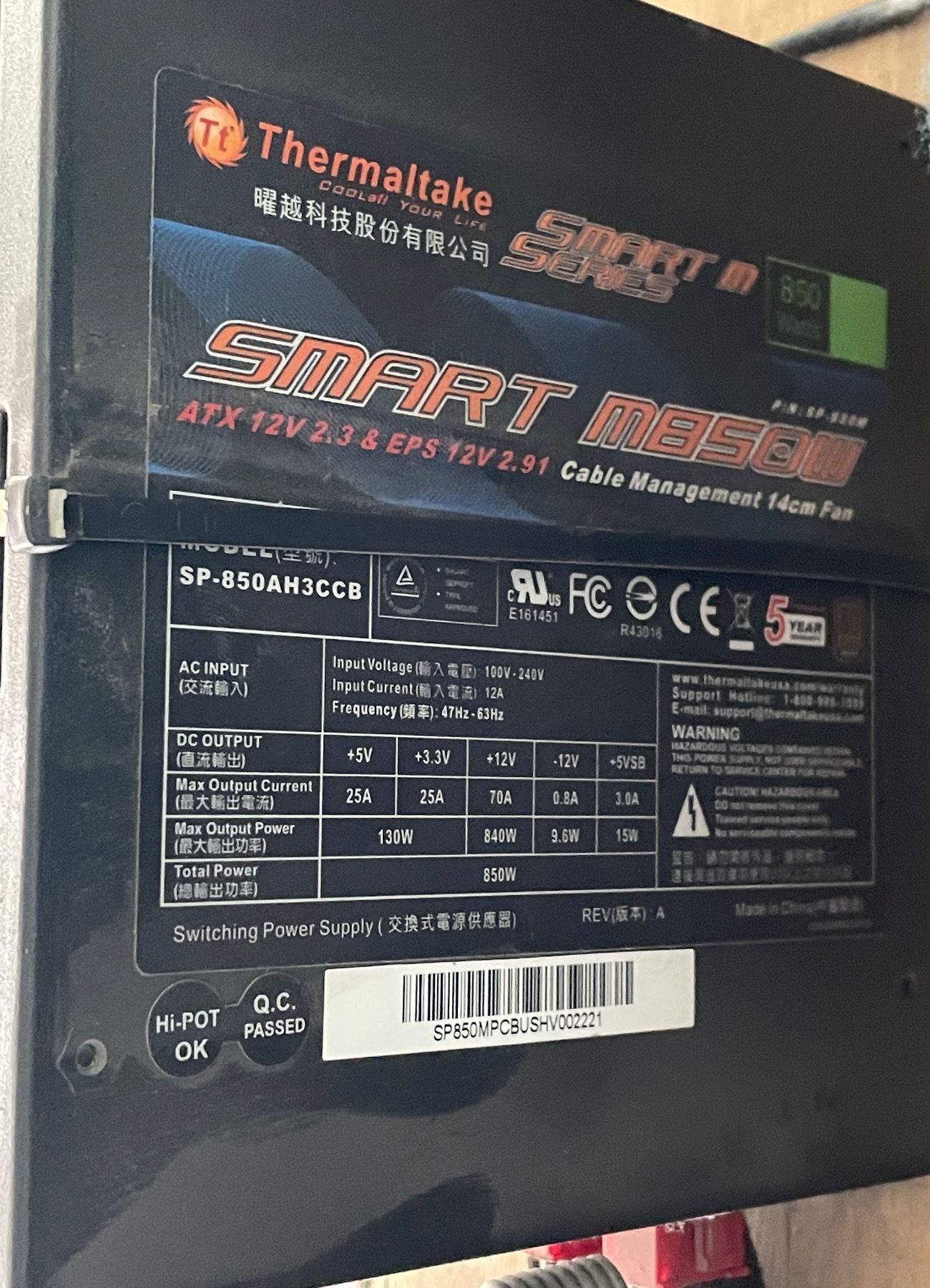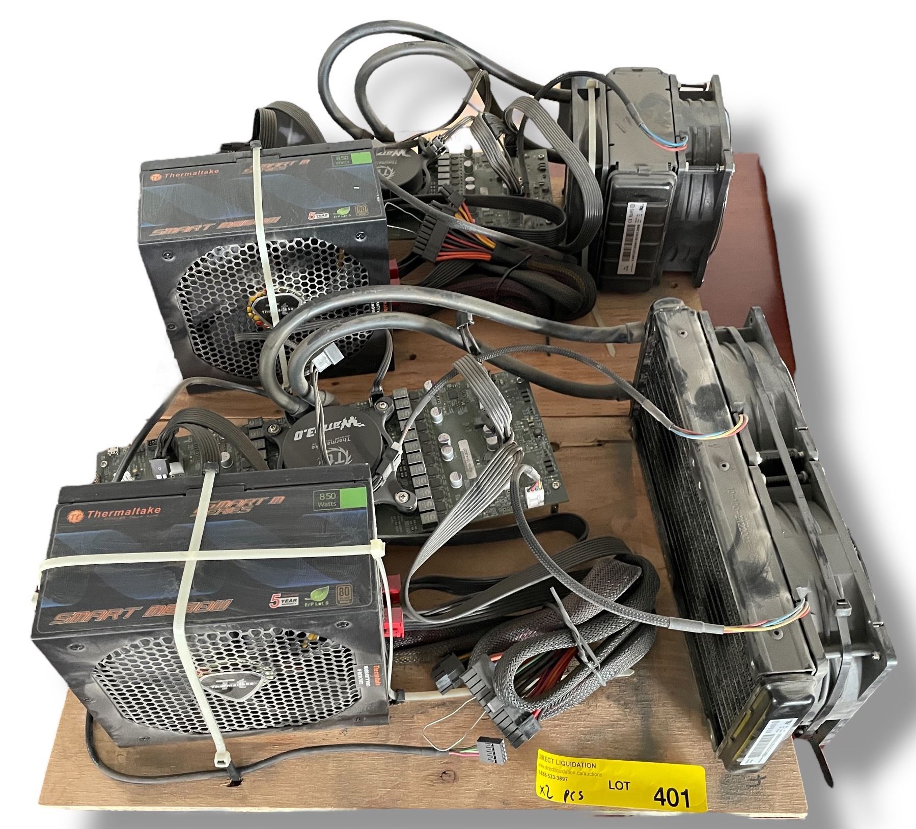 L1 - Group of 2 Bitcoin Mining Setup - Thermaltake Water 3.0, TT-11225 Thermaltake, Asic Mining Rig, Thermaltake Smart M85OW Power Supply Unit, Cables, Wood Board, Etc.- From Storage Locker