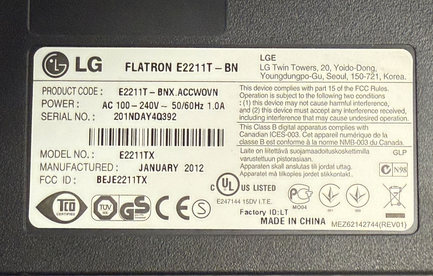L1 - Group of 4 LG/Viewsonic Monitor