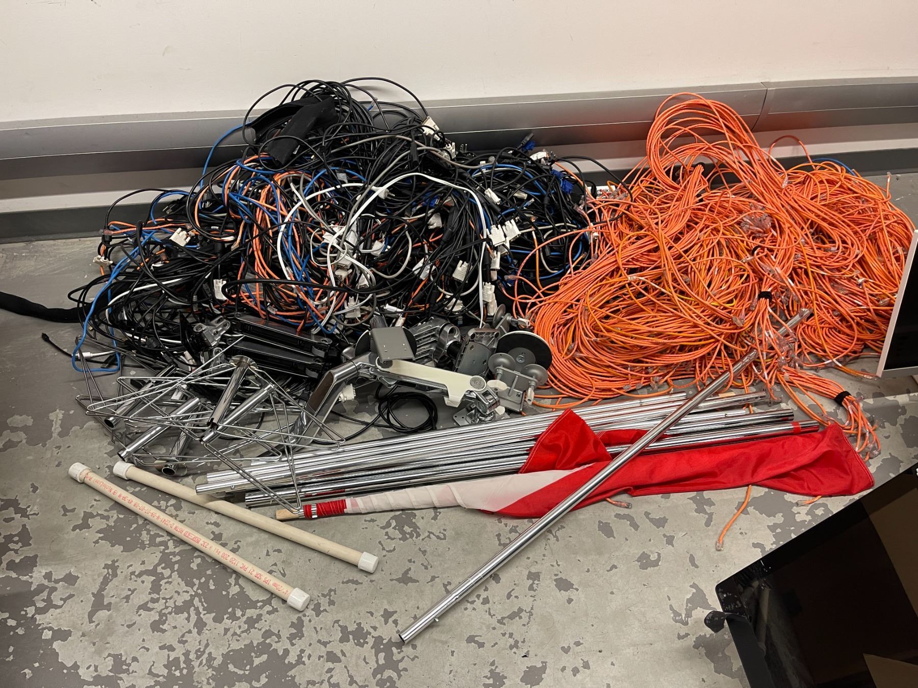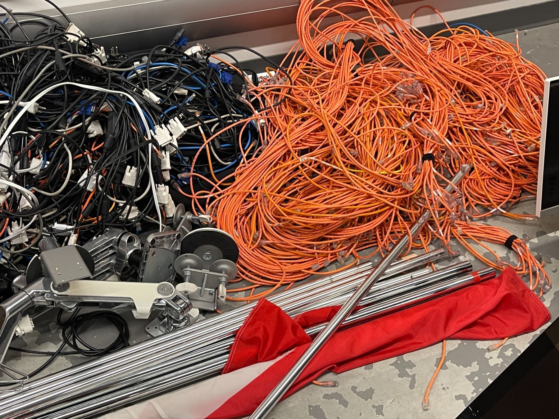 L1 - Large lot of ethernet cable, monitor cables, mounts + (x4) Chairs