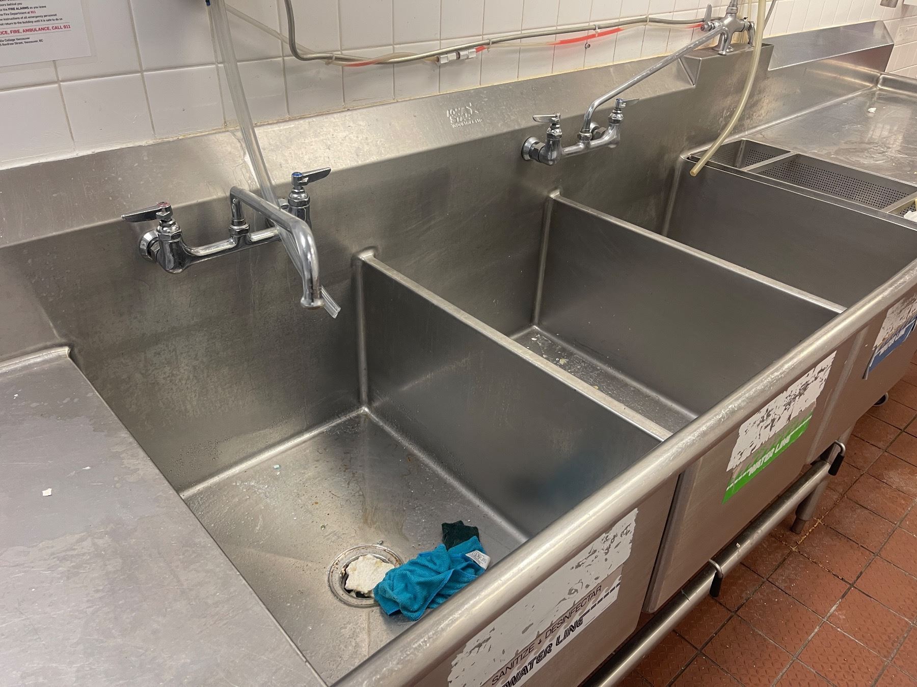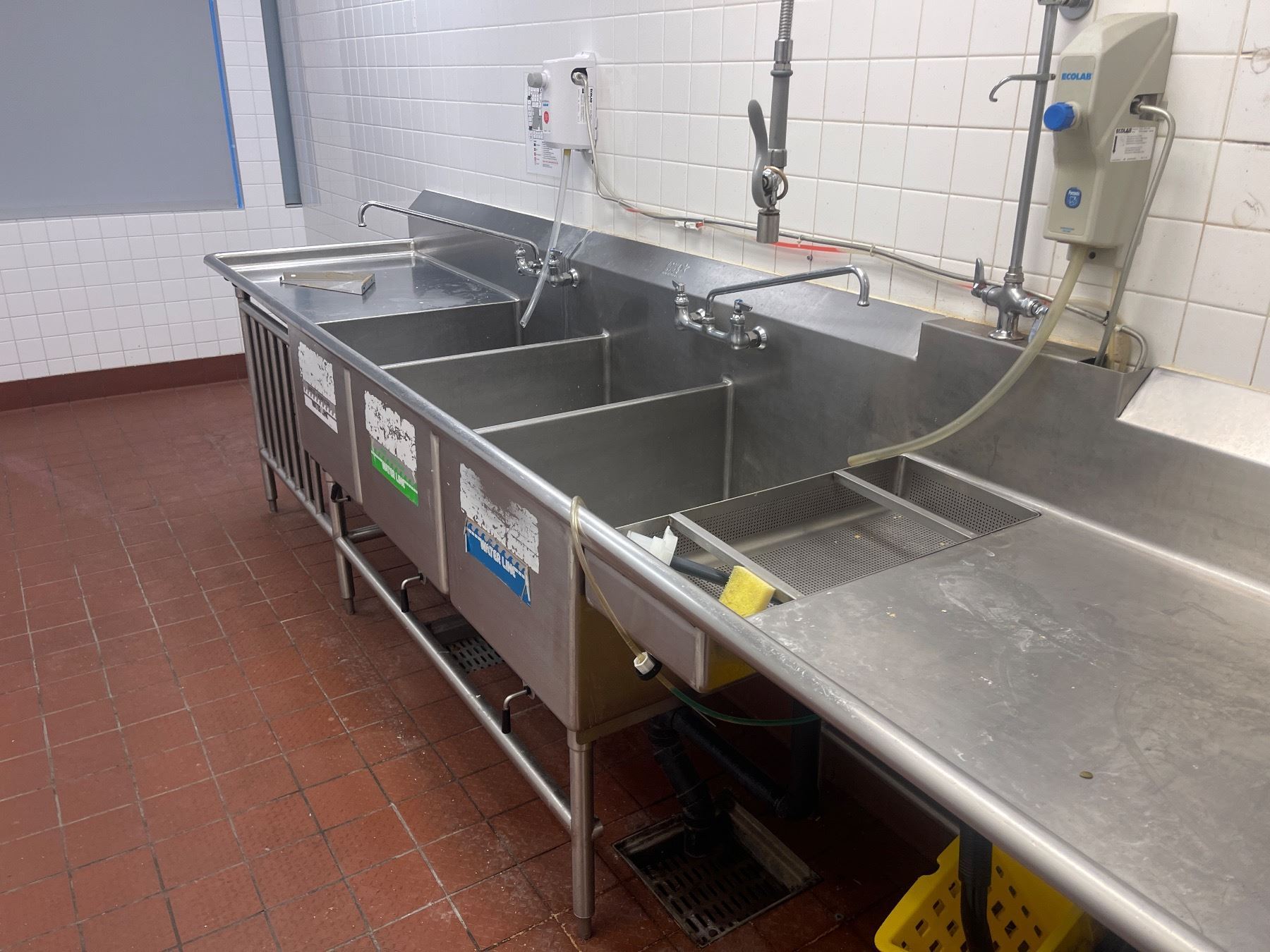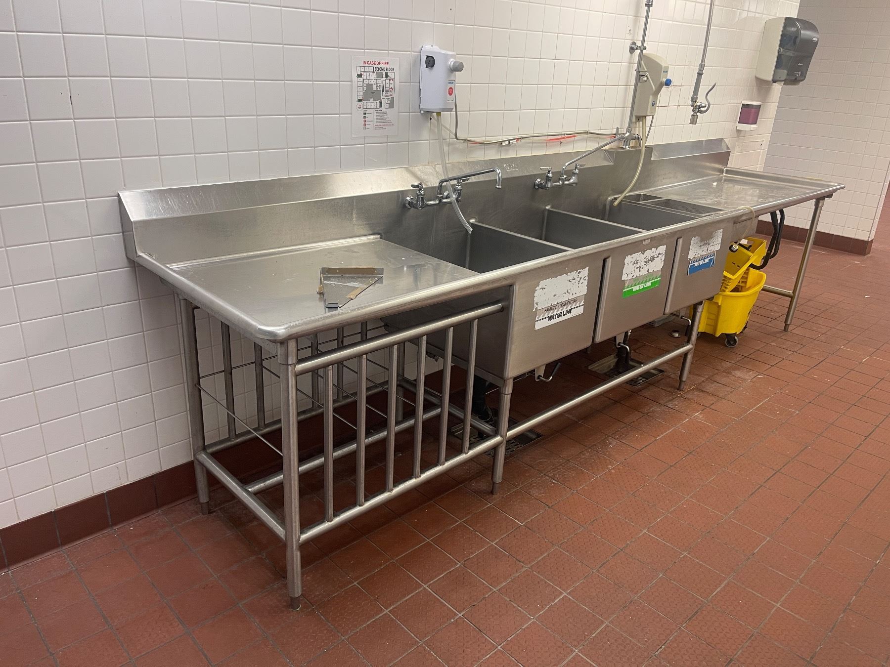 L2 - Large Stainless Steel Industrial Lowe Star Industrial 3 Compartment Sink (Approx. 11ft W)