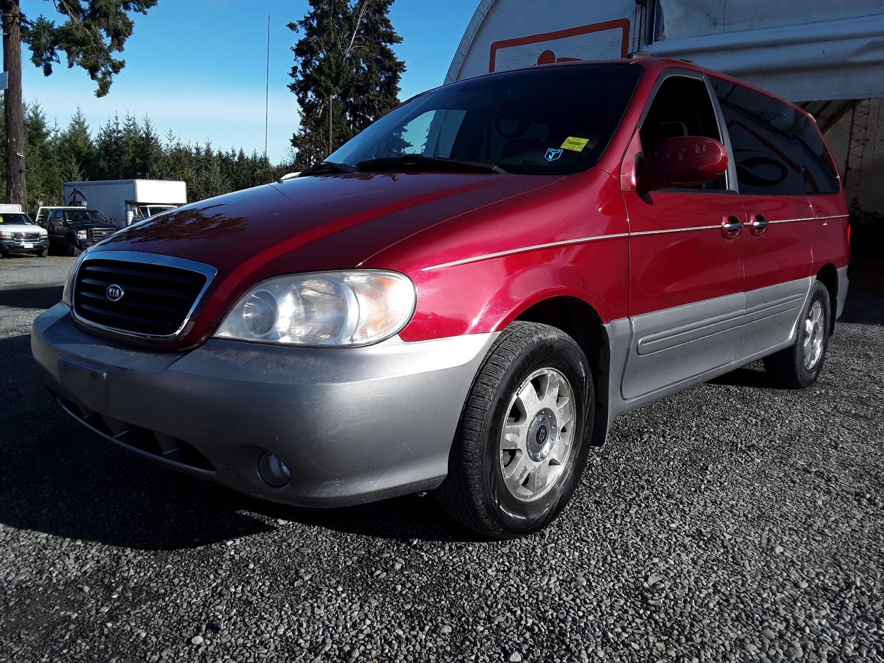 Automatic transmission and 3.5 Litre Engine,6 cylinder , Front Wheel Drive, 165126 KilometersRed ,7 PassengerDeclarations -, Damage Claims, 2002 KIA SEDONA EX , , Intermittent Wipers, Dual Air Bag, AM/FM Stereo , Rear Defroster, Bucket Seats, Anti Lock Brake, Front Disc Brakes-Air Conditioning, Power Windows, Power Locks, Keyless Entry, Tilt Steering, Cruise Control, Alloy Wheels, Anti Theft, CD Player, Power Seats, Rear Heat and Air, Fog Lights, Roof RackAuction Notes :