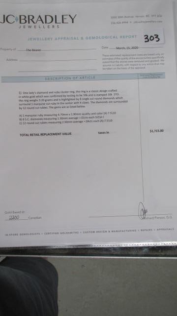 LADIES 10K DIAMOND/RUBY RING WITH LOCAL APPRAISAL $1,715.00 - sz 5 1/4 approx.