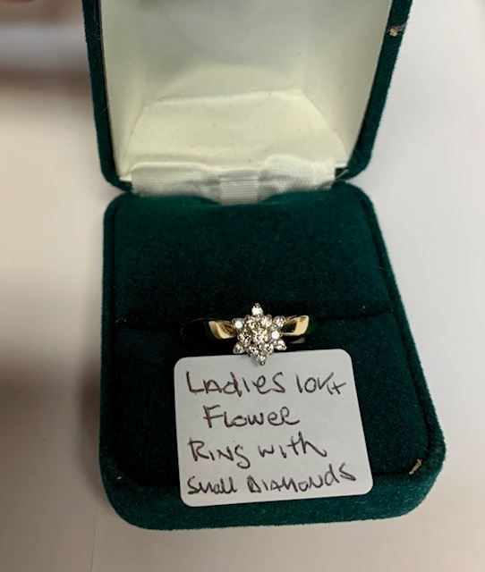 LADIES 10K FLOWER RING W/SMALL DIAMONDS, SZ 5.5