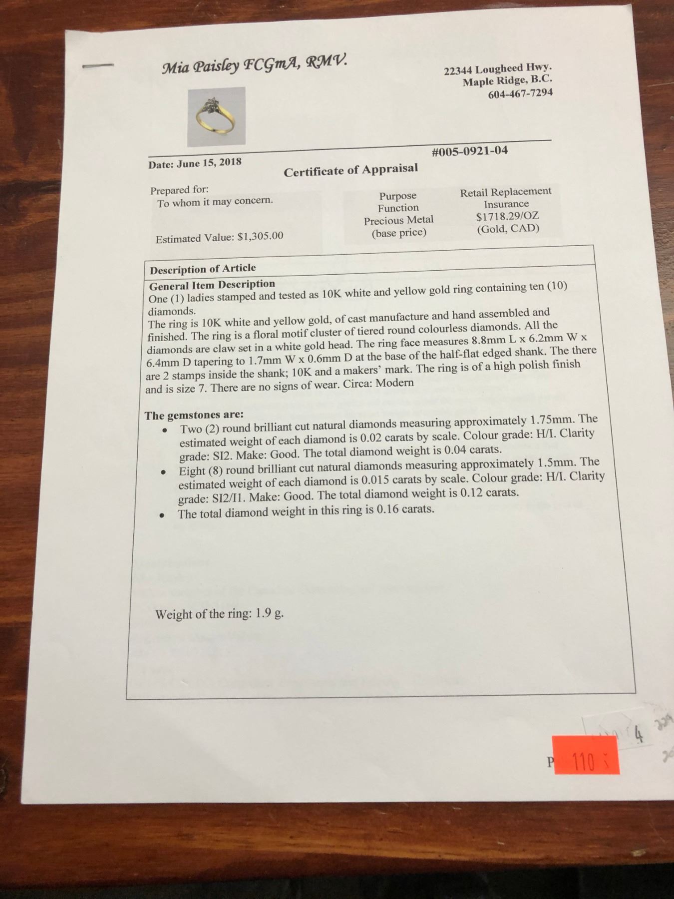 LADIES 10K  WHITE & YELLOW GOLD 10 DIAMOND RING   - APPRAISED VALUE $1305.00