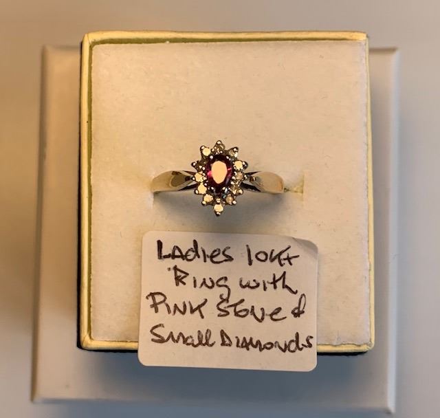 LADIES 10KT RING W/PINK STONE