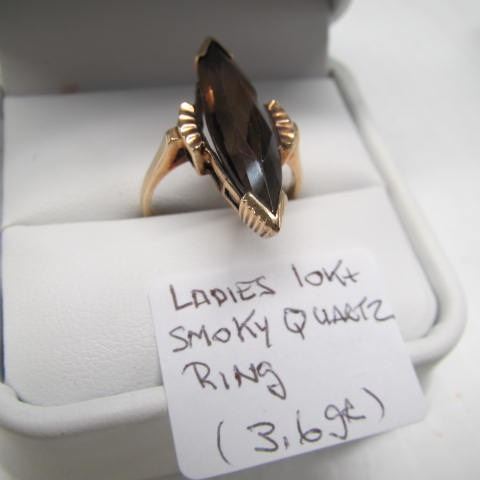 LADIES 10KT SMOKED QUARTZ RING, 3.6G