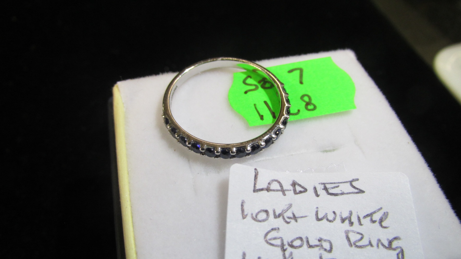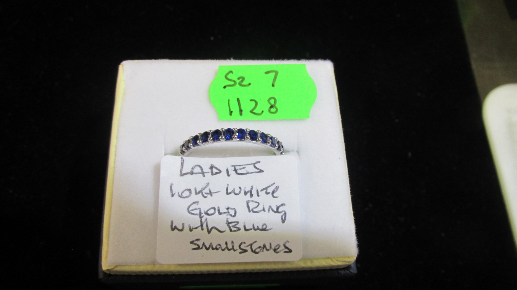 LADIES 10KT WHITE GOLD RING W/BLUE SM. STONES, SZ 7