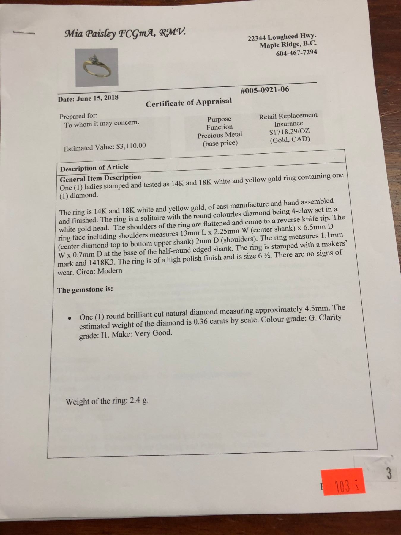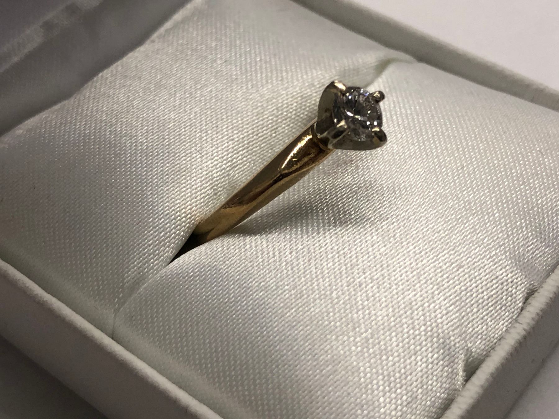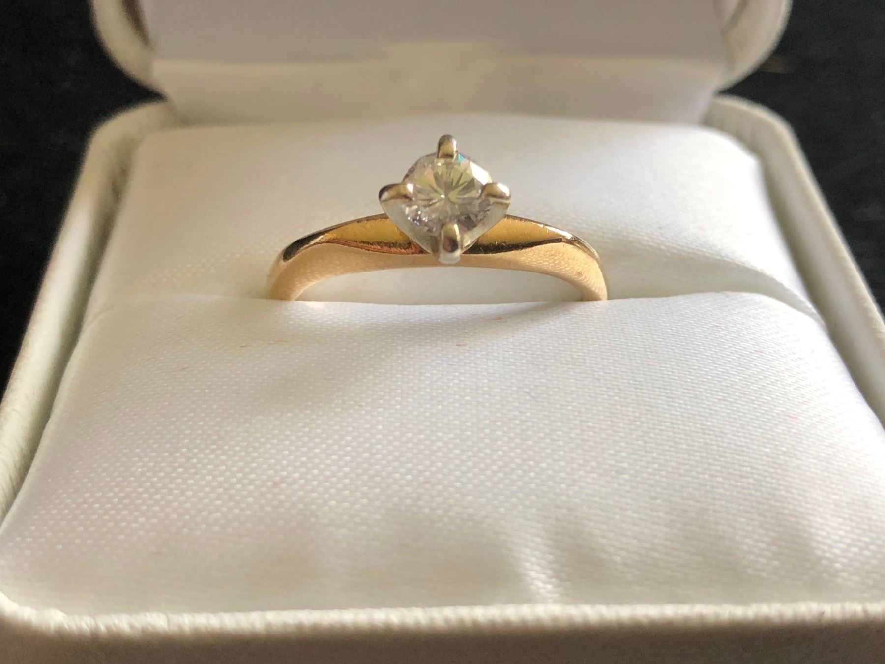LADIES 14K / 18K WHITE & YELLOW GOLD RING DIAMOND SOLITAIRE - APPRAISED VALUE $3110.00 0.36CTS DIAMONDS / 2.4GMS GOLD