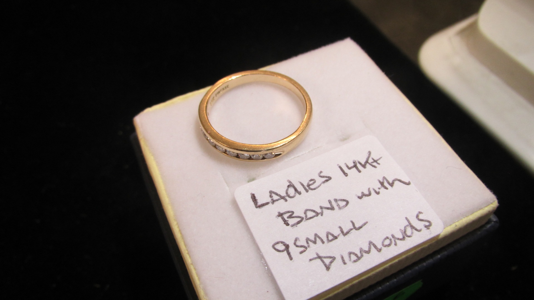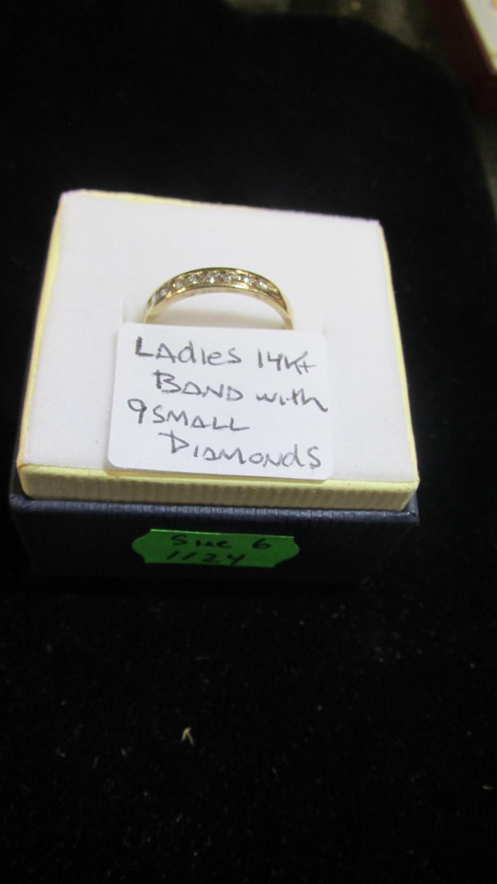 LADIES 14KT BAND W/9 SM. DIAMONDS, SZ 6