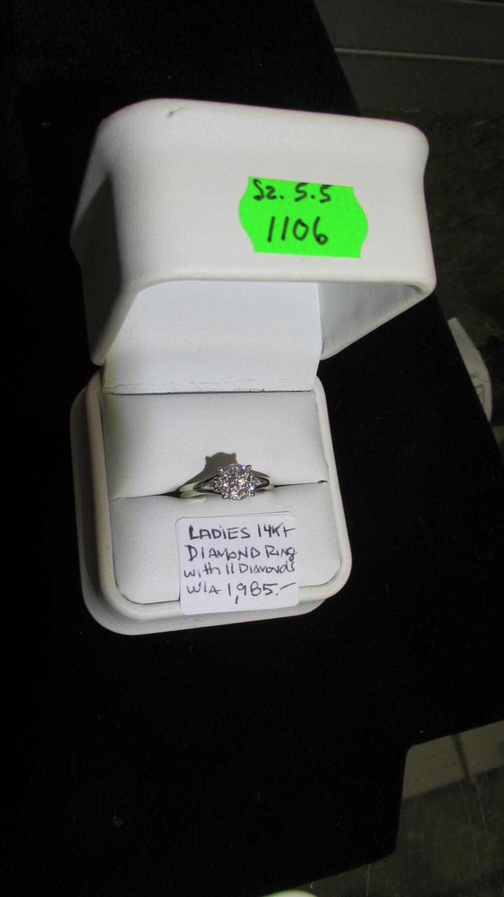 LADIES 14KT DIAMOND RING W/11 DIAMONDS, W/A $1,985, SZ 5.5