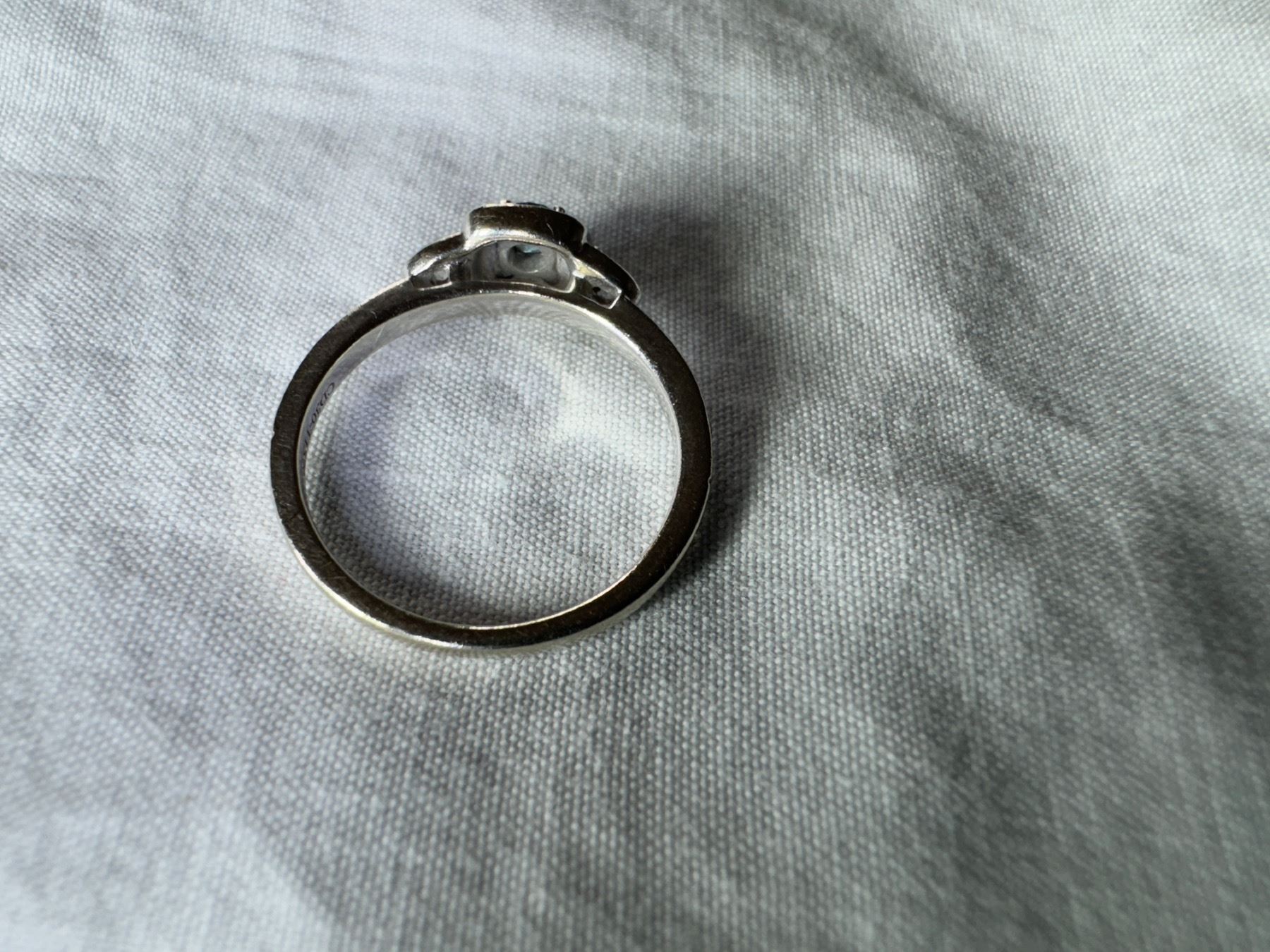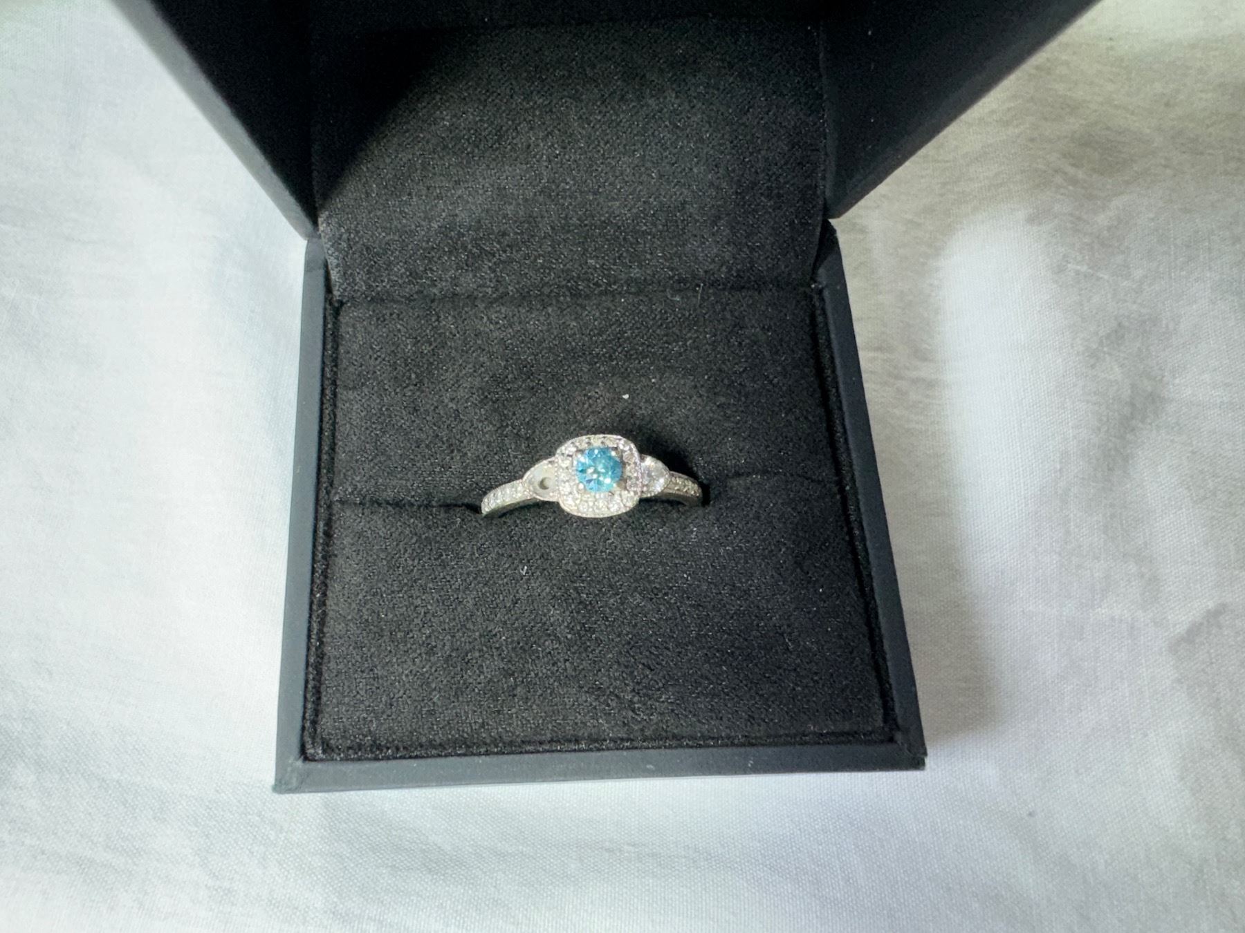 LADIES 14KT WHITE GOLD BLUE COLOUR ENHANCED AND NEAR COLOURLESS DIAMOND DRESS RING WITH 34 DIAMONDS TOTAL .41 CARAT 2.90 GRAMS REPLACEMENT $1,800.00 APPRAISAL INCLUDED