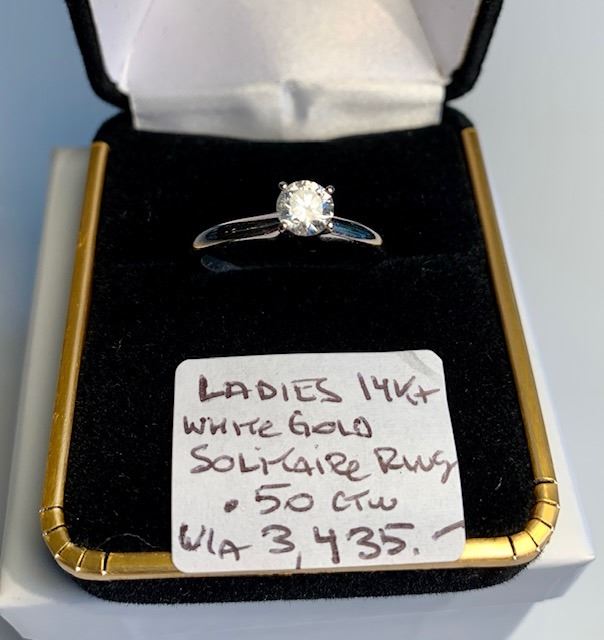 LADIES 14KT WHITE GOLD SOLITAIRE RING - .50 TCW w/A - $3,435. - SZ 7 1/4