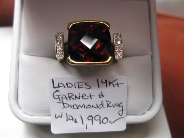 LADIES 14kt GARNET & DIAMOND RING W/A - $1,990