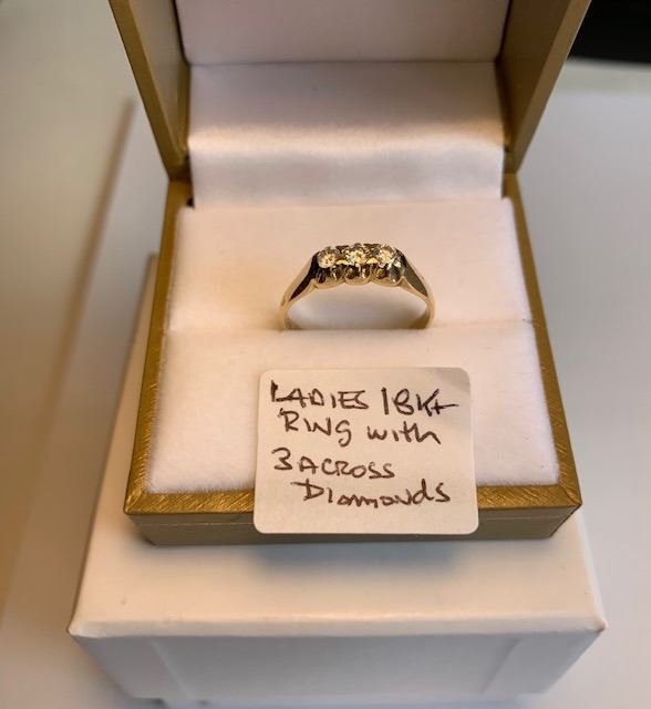 LADIES 18KT RING W/3 ACROSS DIAMONDS - SZ 7.5