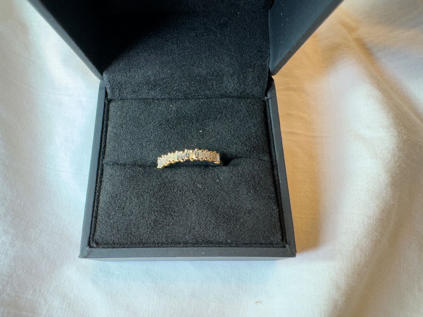 LADIES 18KT YELLOW GOLD DIAMOND RING WITH 16 BAGUETTE CUT DIAMONDS .45 CARAT REPLACEMENT $1,650.00 APPRAISAL INCLUDED