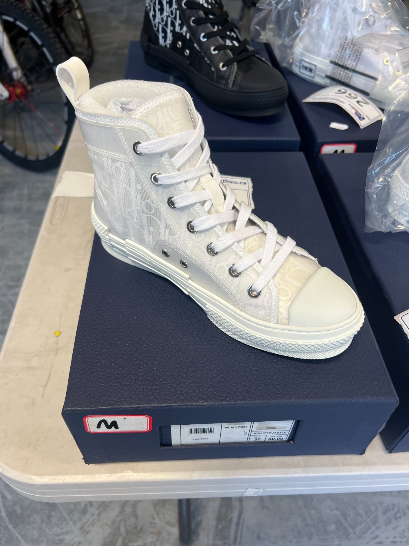LADIES DIOR WHITE CANVAS HIGH TOP SHOES SIZE 6.5