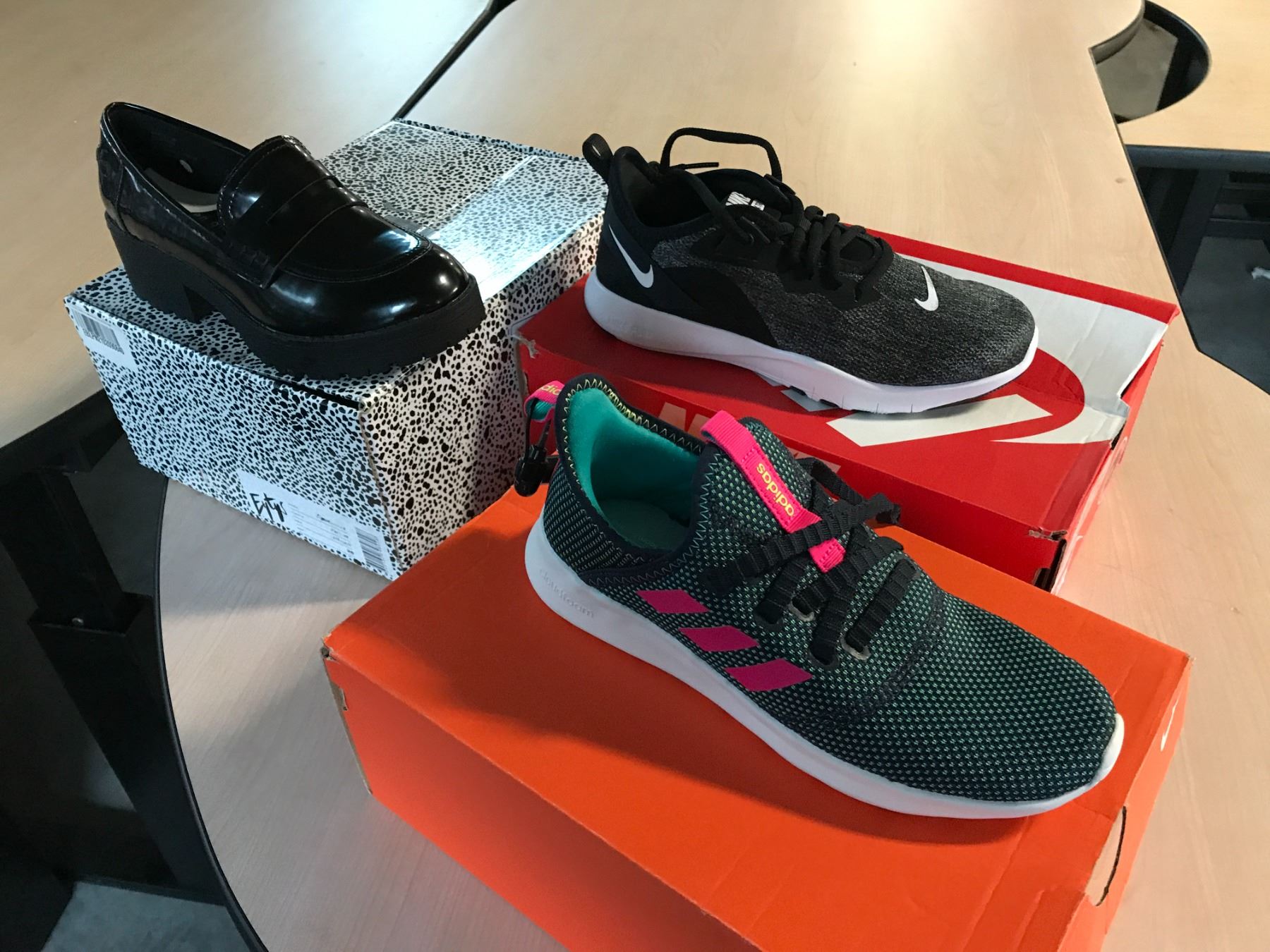 LADIES NIKE REVOLUTION RUNNING SHOES SIZE 5, LADIES NIKE FLEX RUNNING SHOS SIZE 8 AND STEVE MADDEN BLACK SIZE 7 SHOES