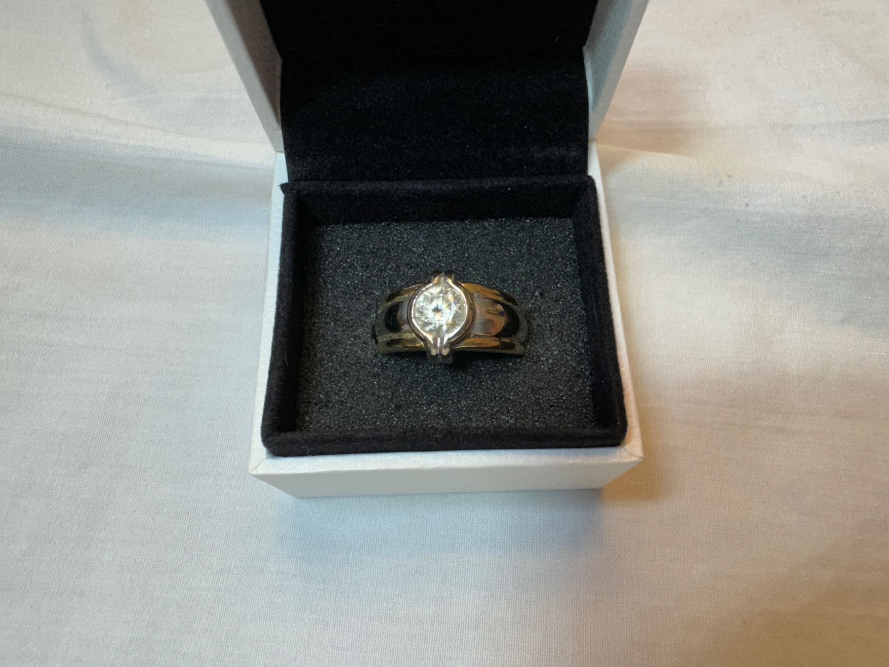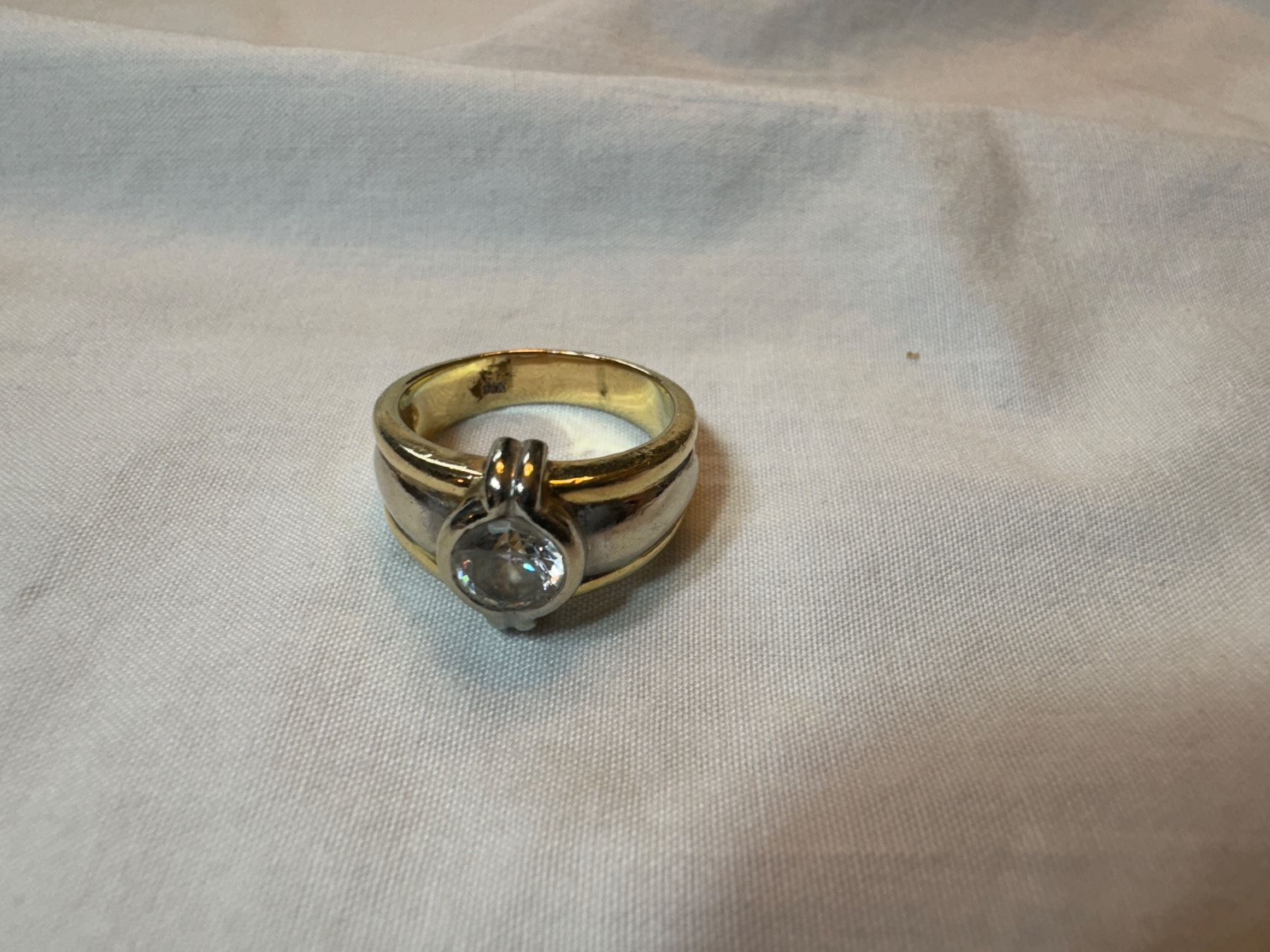 LADIES OR GENTS 14KT YELLOW GOLD AND WHITE GOLD COLOURLESS CUBIC ZIRCONIA DRESS RING 9.9 GRAMS REPLACEMENT VALUE $1,700.00 APPRAISAL INCLUDED