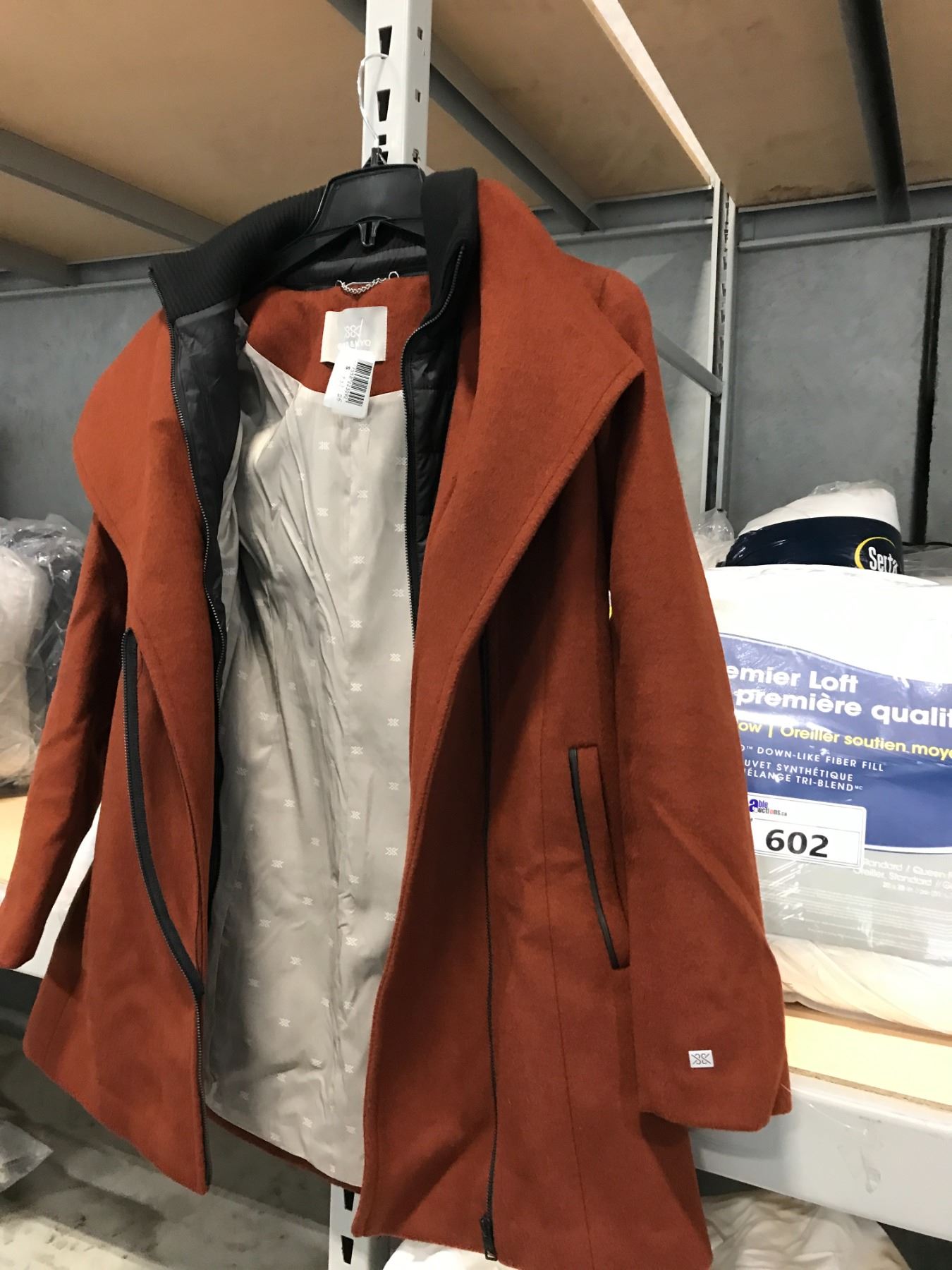 LADIES RUST SOIA & KYO PEA COAT WITH BROKEN ZIPPER, SIZE MEDIUM