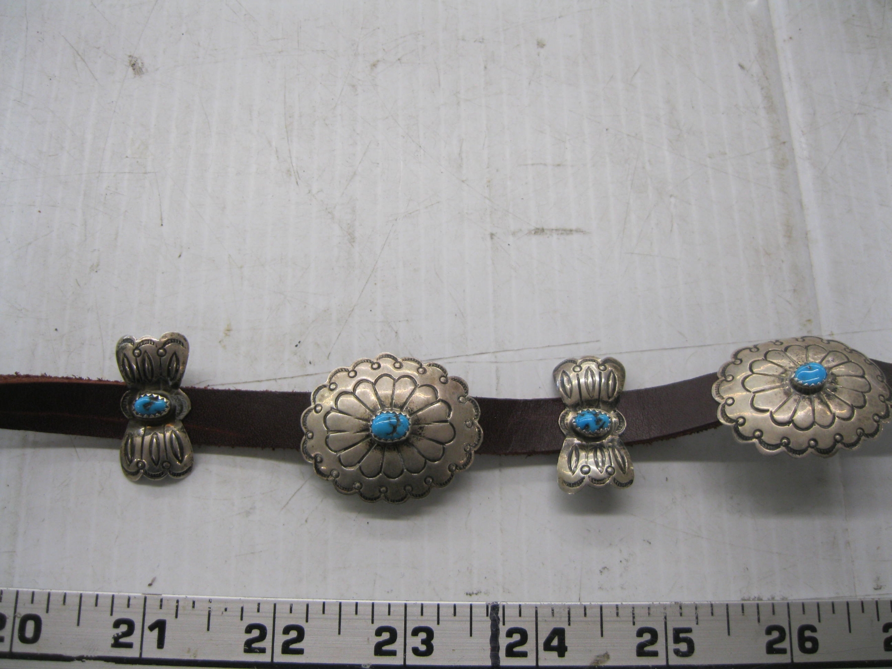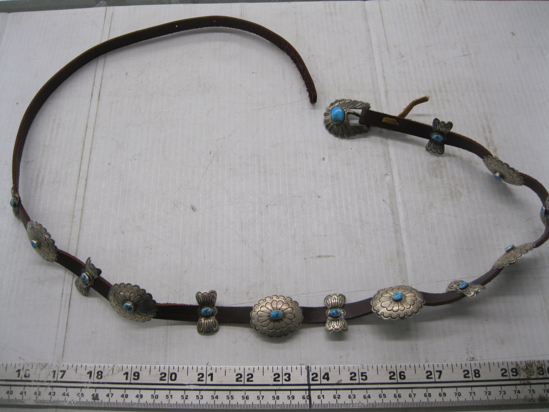 LADIES SILVER & TURQUOISE NAVAJO LEATHER BELT