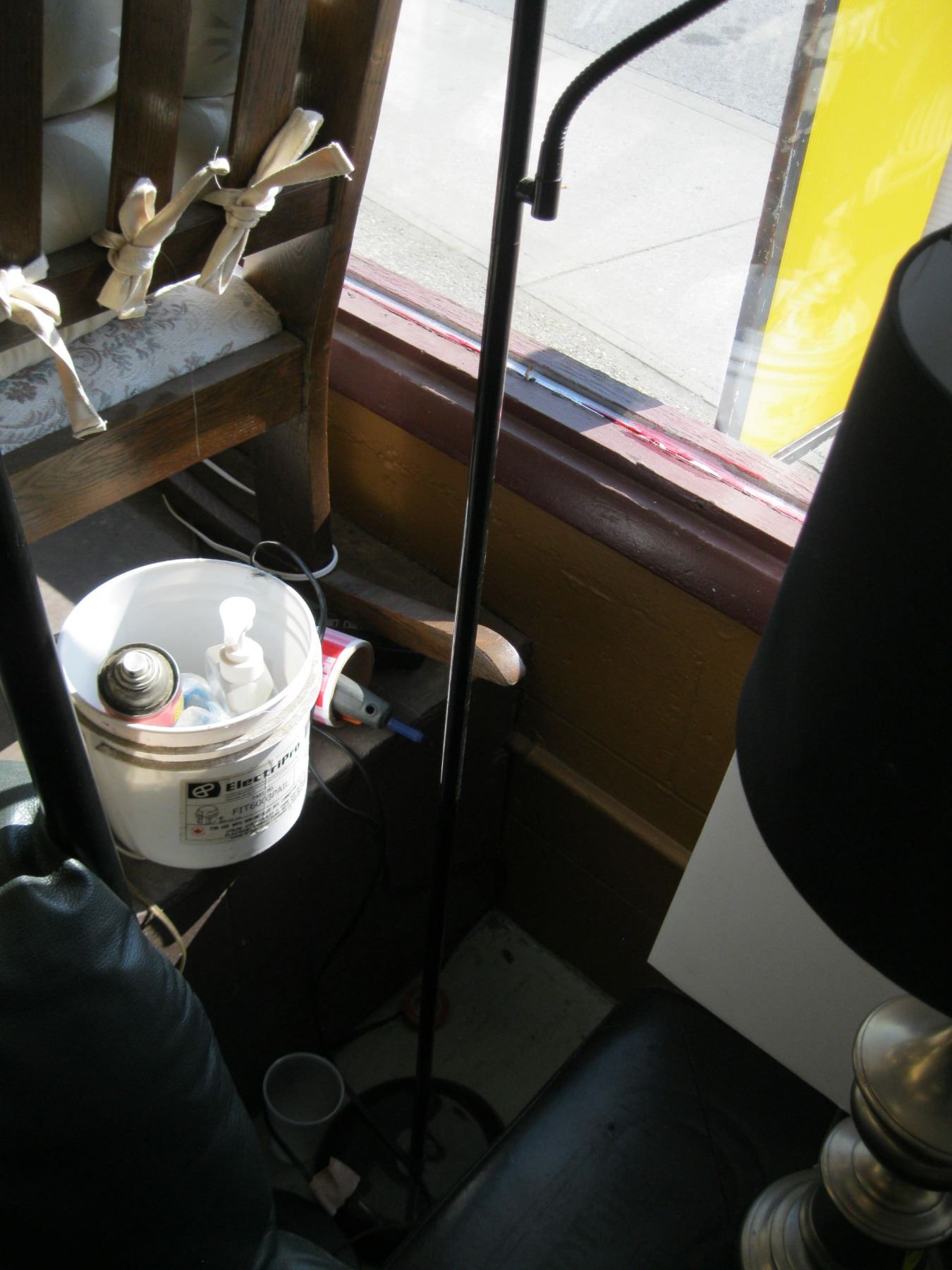 LAMP & PADDED FOOTSTOOL & FLOOR LAMP