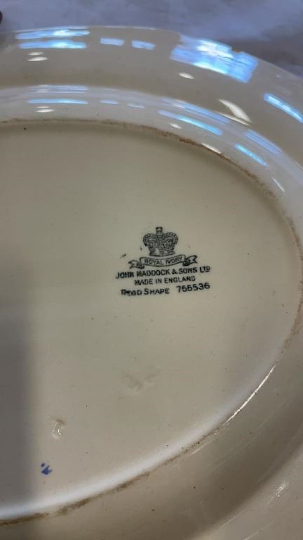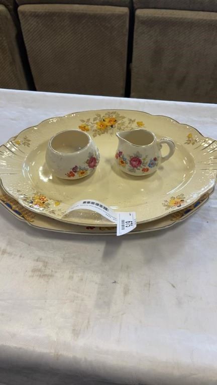 LANGCASTERS CREAM AND SUGAR, MEAKIN SERVING PLATTER, ROYAL IVORY MADDOCK AND SONS PLATTER