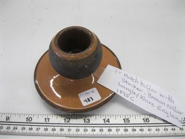 LANGLEY WARE BROWN COLOR MATCH HOLDER W/STRIKER C. 1895