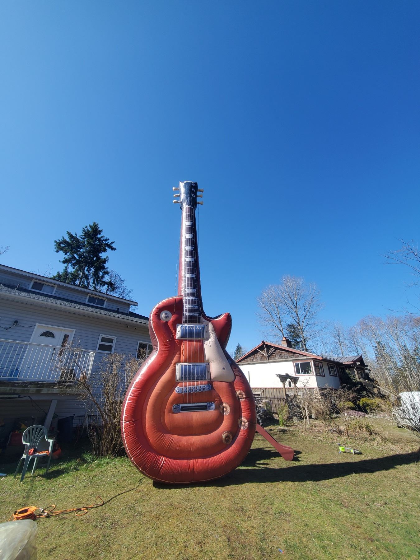 LARGE 17' TALL INFLATABLE GUITAR WITH BLOWER (COMBO COMMERCIAL GRADE PVC & MULTIPLE ANCHOR POINTS)