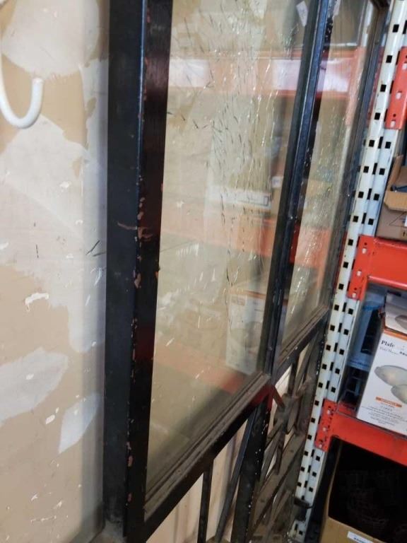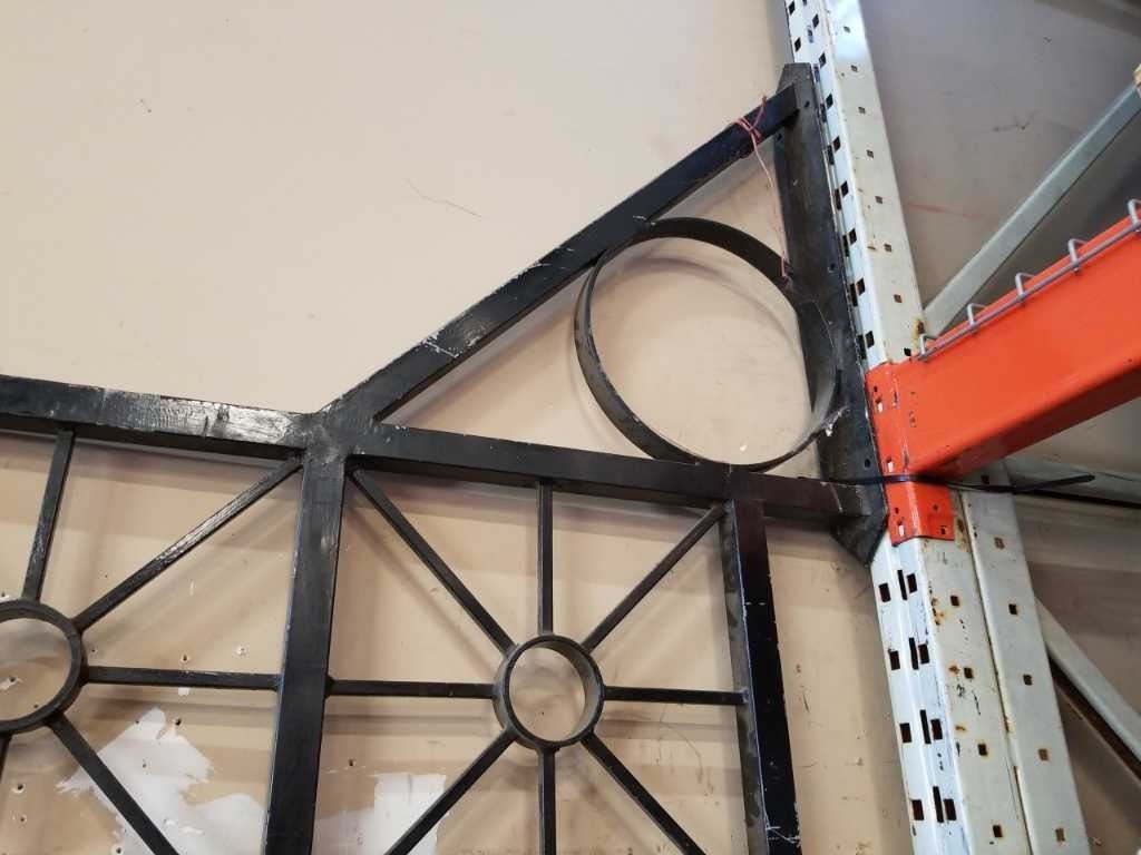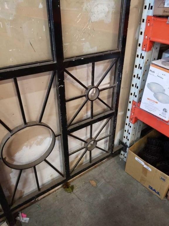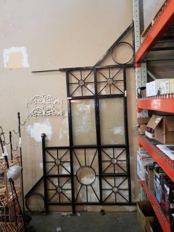 LARGE ARCHITECTURAL OUTDOOR SCREEN DIVIDER WITH FLAG HOLDER APPROX 10 FOOT TALL, 64 INCHES WIDE