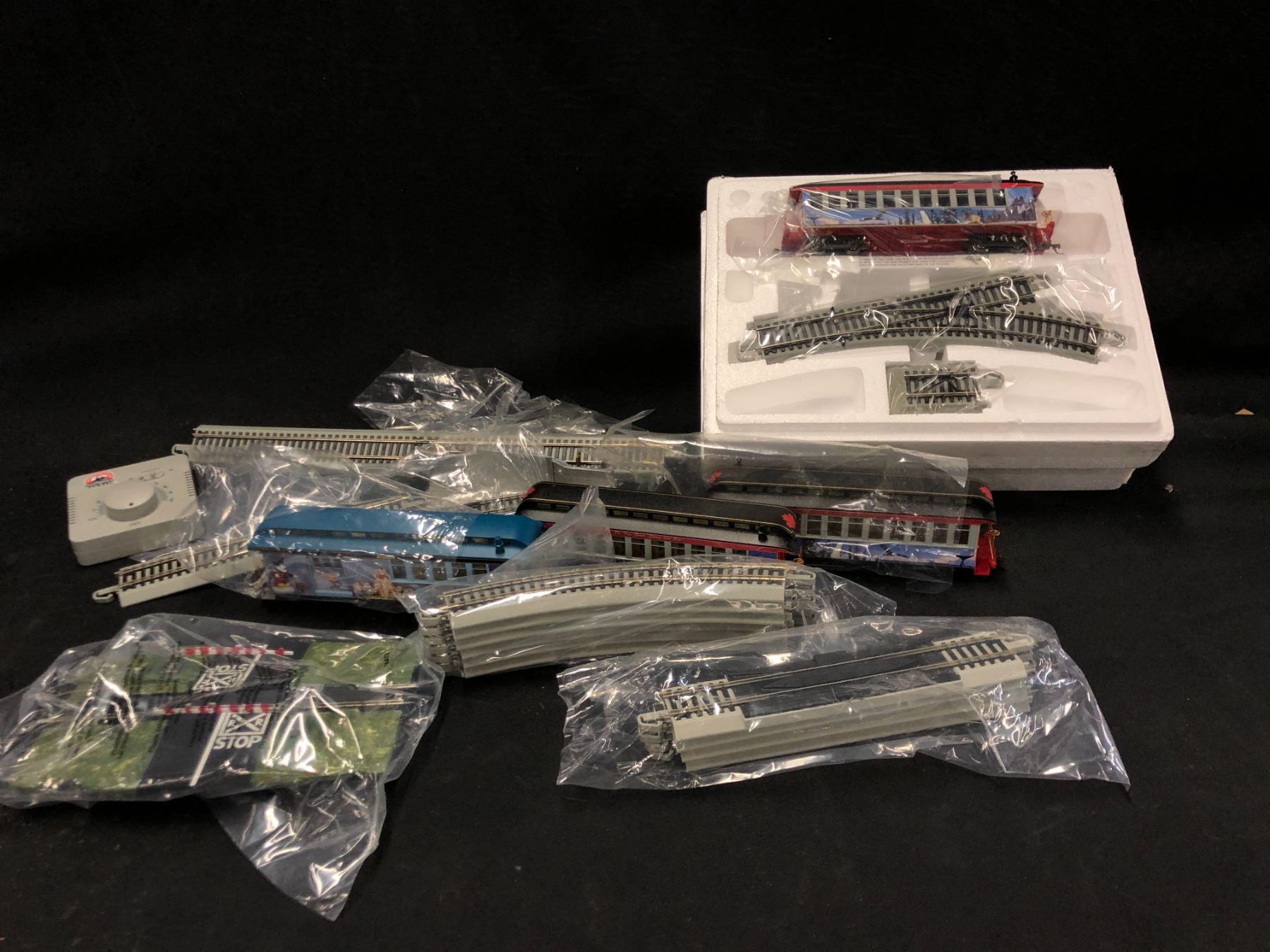 LARGE ASSORTMENT OF MODEL TRAINS, CONTROLLERS, TRACKS ETC.