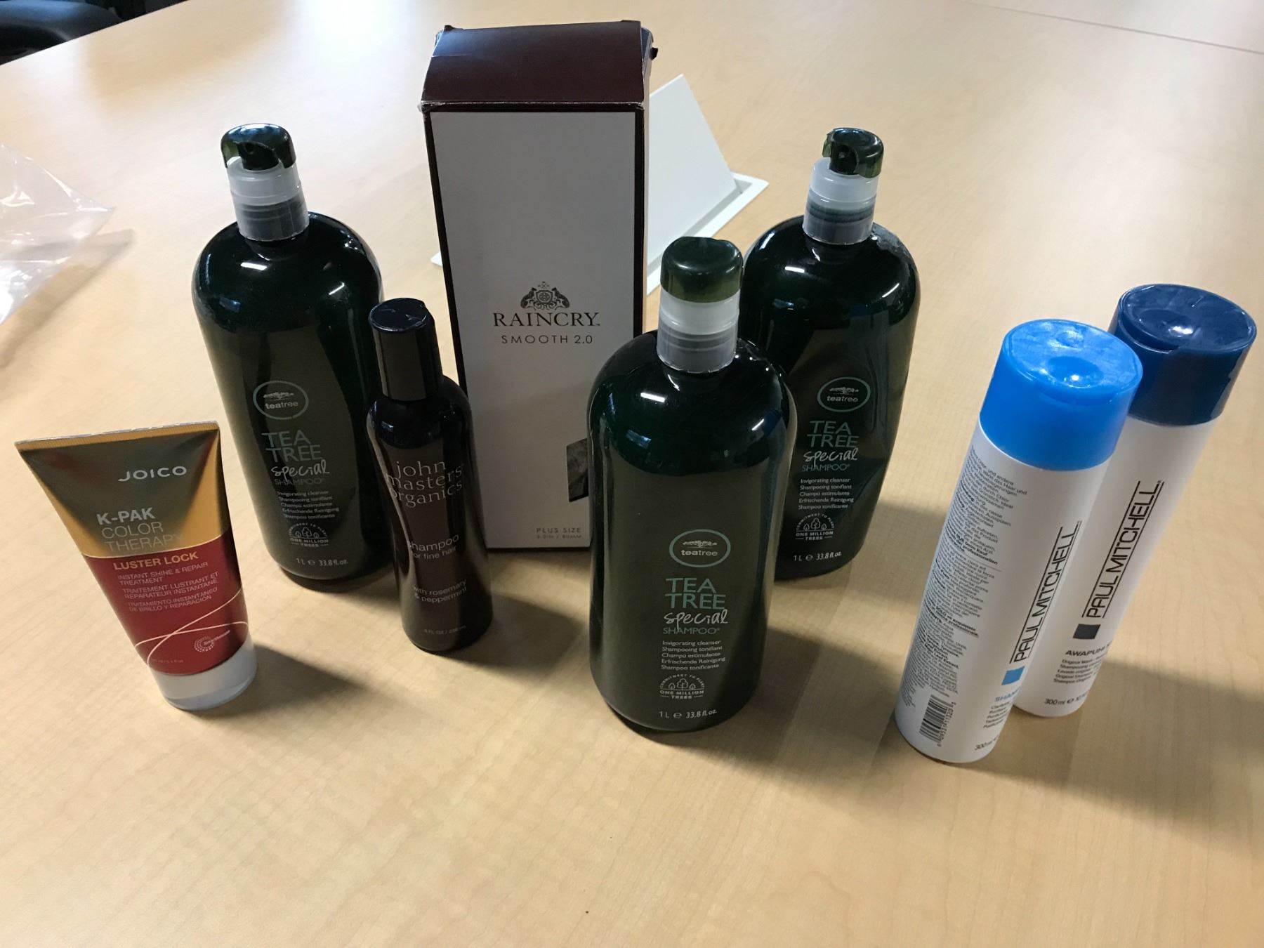 LARGE BAG OF HAIR PRODUCTS INCLUDING TEA TREE SHAMPOO JOICO COLOUR THERAPY, PAUL MITCHELL SHAMPOO RAINCRY SMOOTH 2.0 BRUSH AND MORE