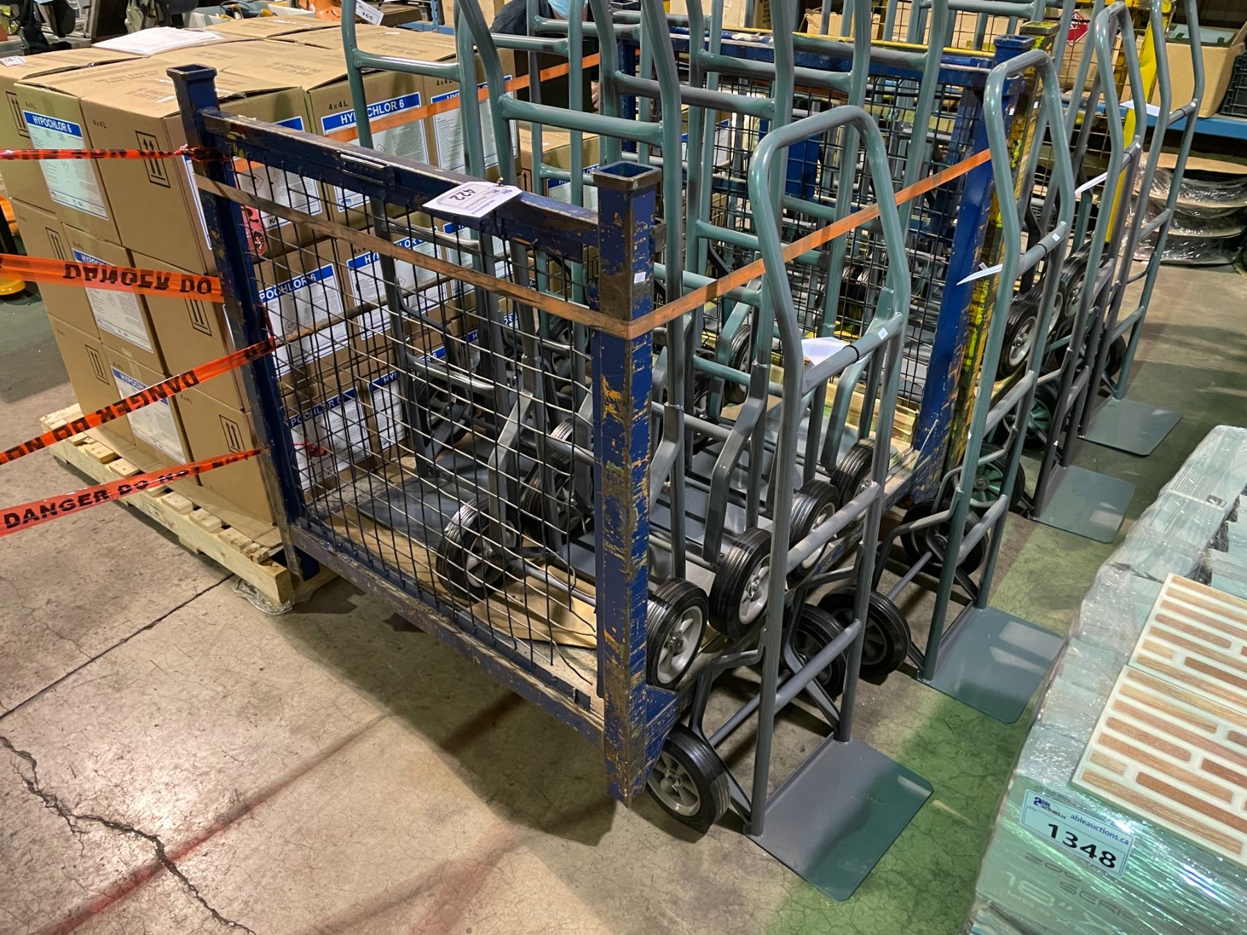 LARGE BLUE METAL MOBILE WAREHOUSE BIN CART 47"W X 49"D X 48"H