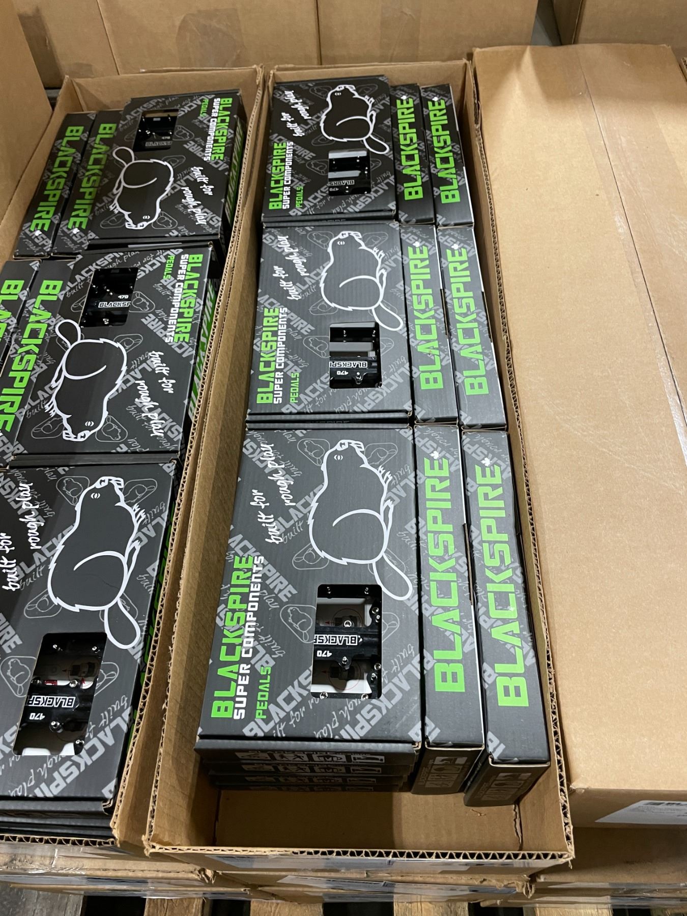 LARGE BOX OF 18 PAIR BLACK BLACKSPIRE SUPER COMPONENTS BIG SLIM PEDALS