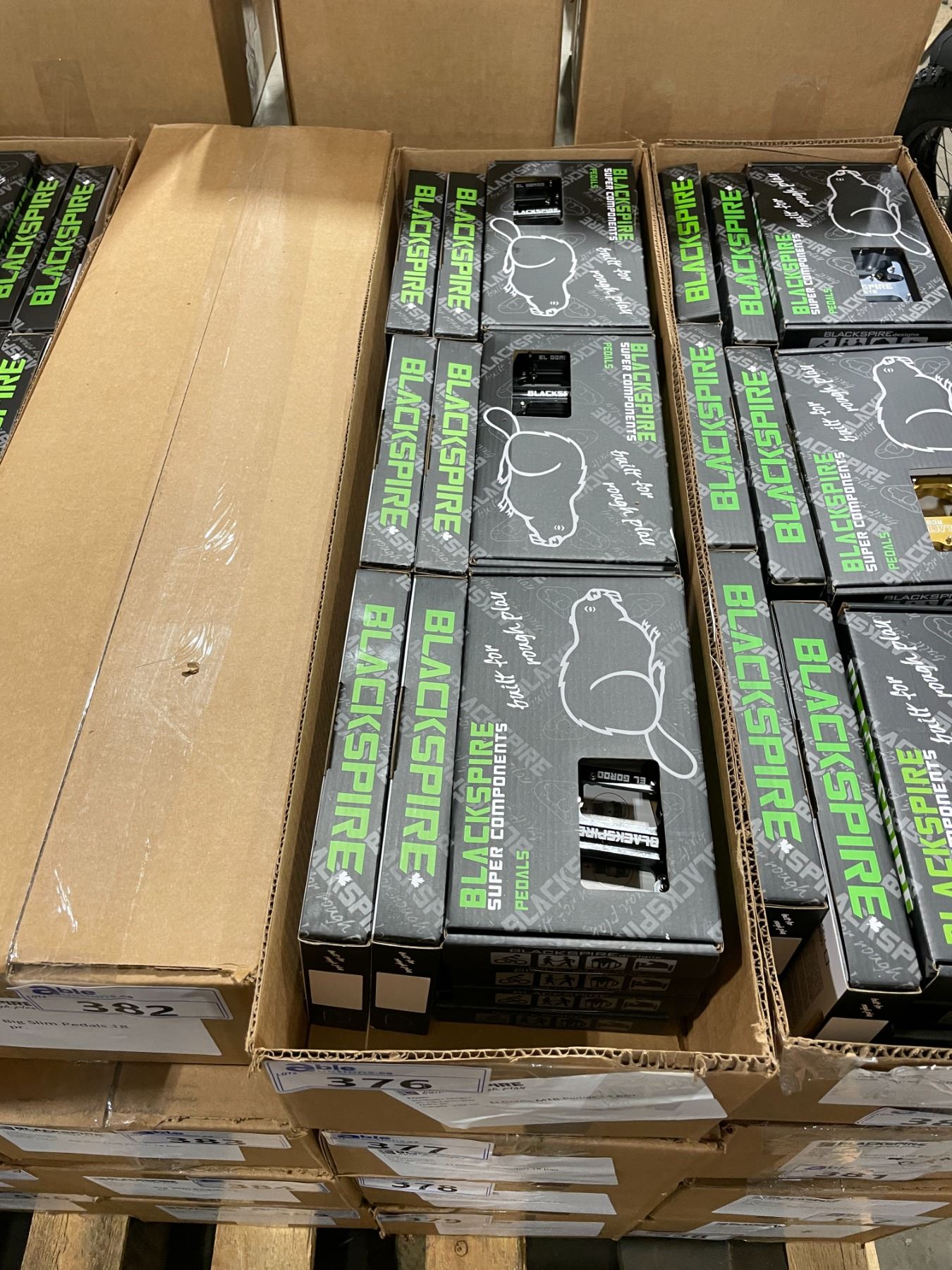 LARGE BOX OF 18 PAIRS BLACKSPIRE SUPER COMPONENTS EL GORDO MTB PEDALS ** PEDAL COLOR UNKNOWN **