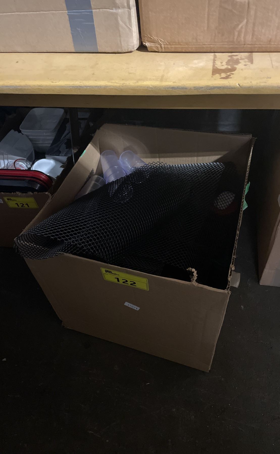 LARGE BOX OF ASSORTED SERVING TRAYS & COMMERCIAL KITCHEN ITEMS