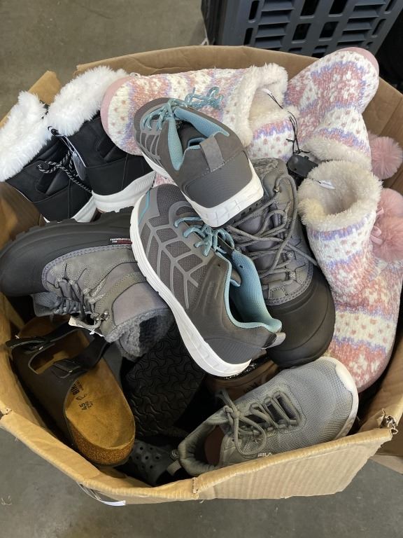LARGE BOX OF ASSORTED SHOES AND SLIPPERS