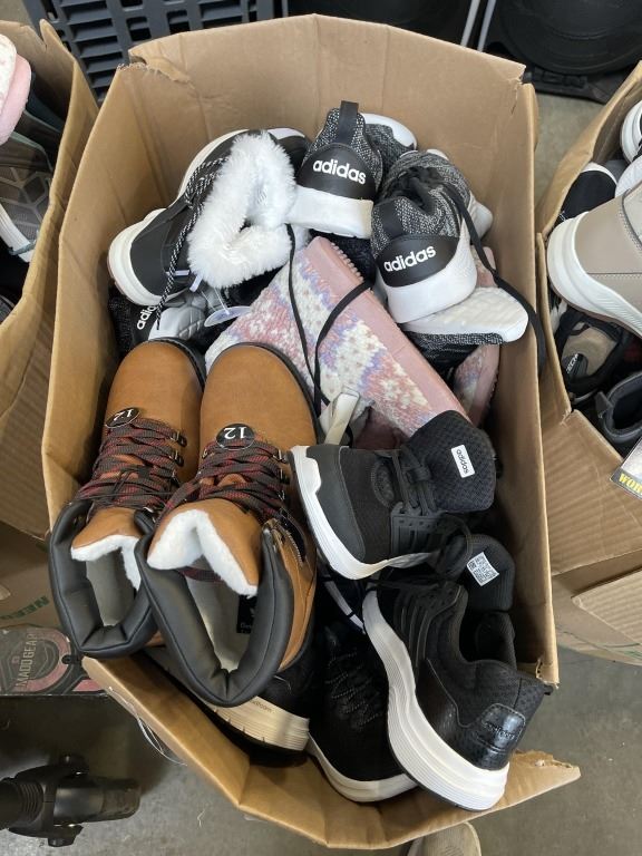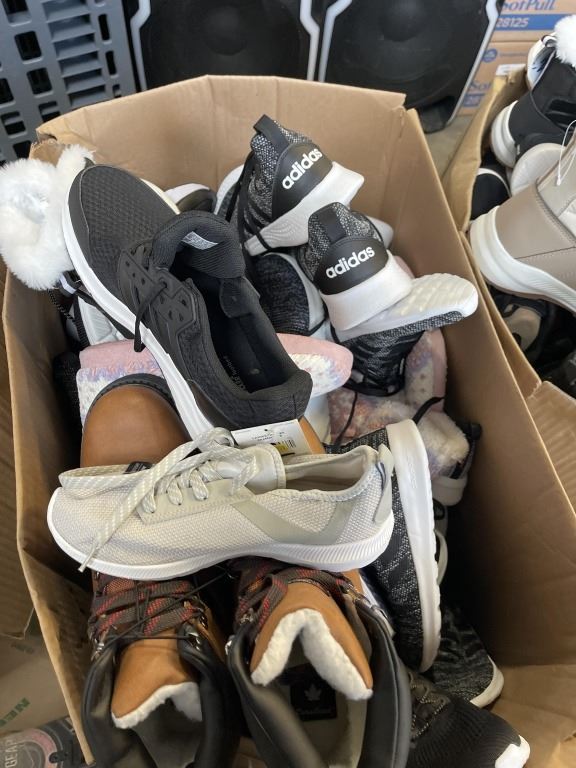 LARGE BOX OF ASSORTED SHOES AND SLIPPERS