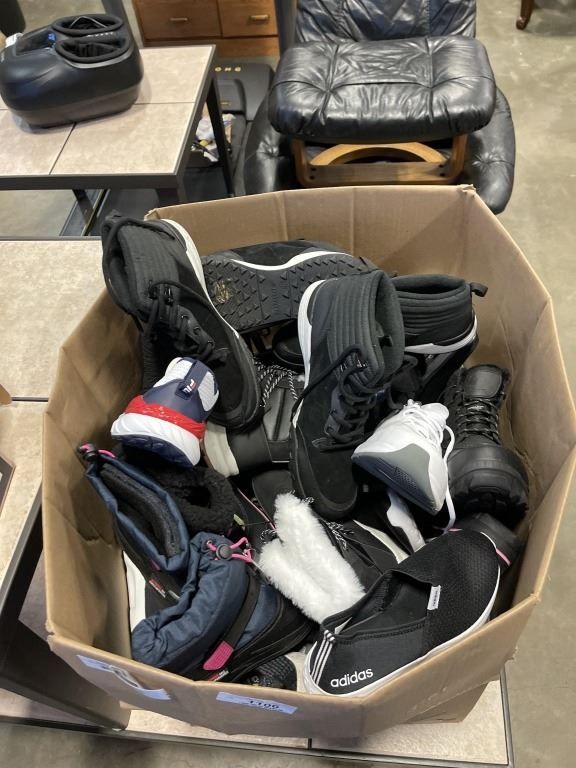 LARGE BOX OF ASSORTED SHOES AND SLIPPERS