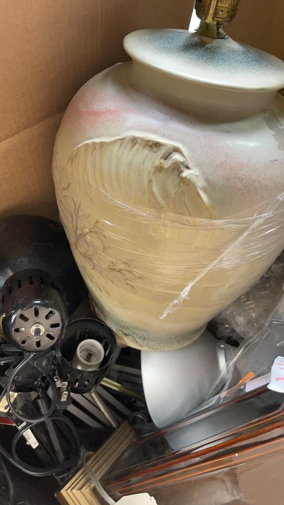 LARGE BOX OF LAMPS, MIRRORS AND LIGHTS