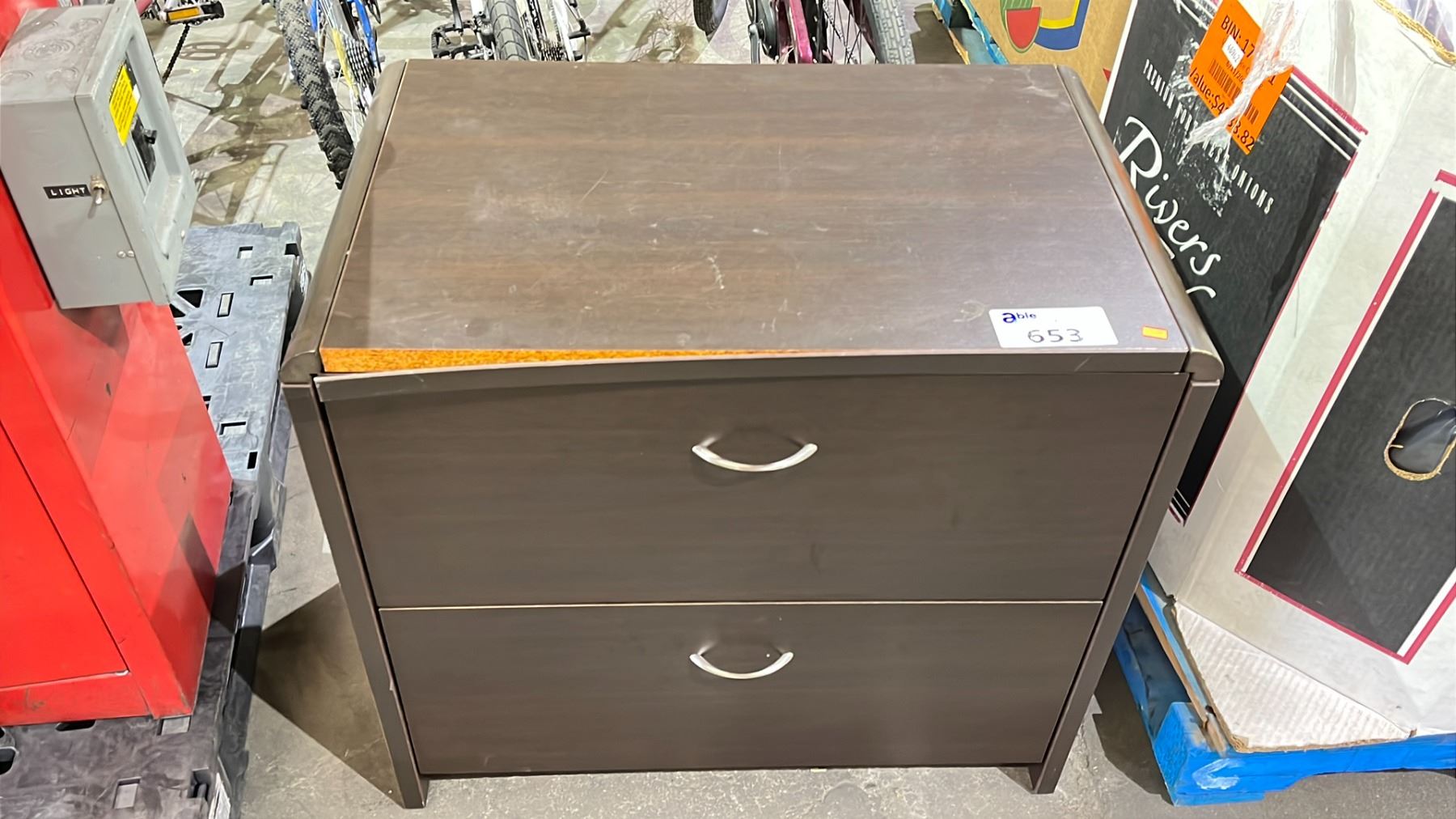 LARGE BROWN WOODEN 2 DRAWER NIGHTSTAND