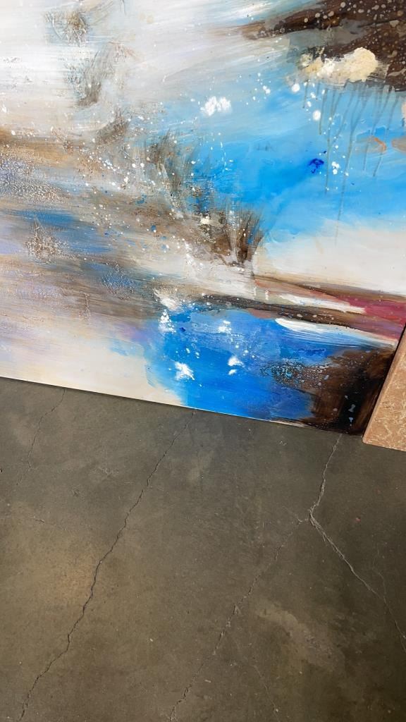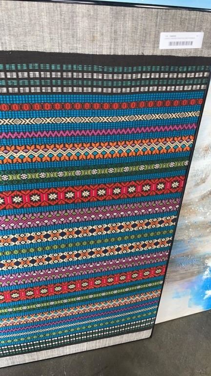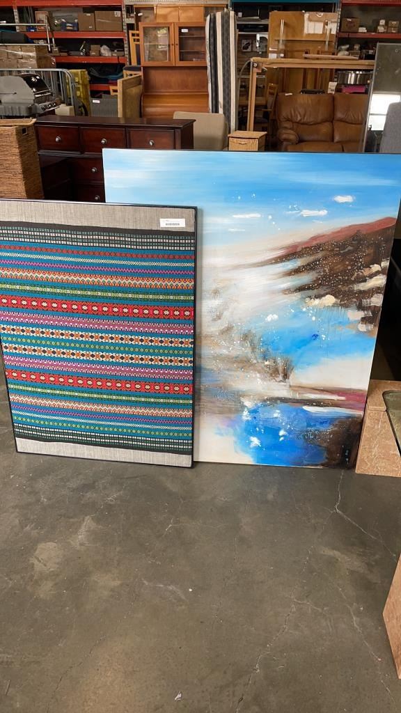 LARGE CANVAS PAINTING AND FRAMED TAPESTRY