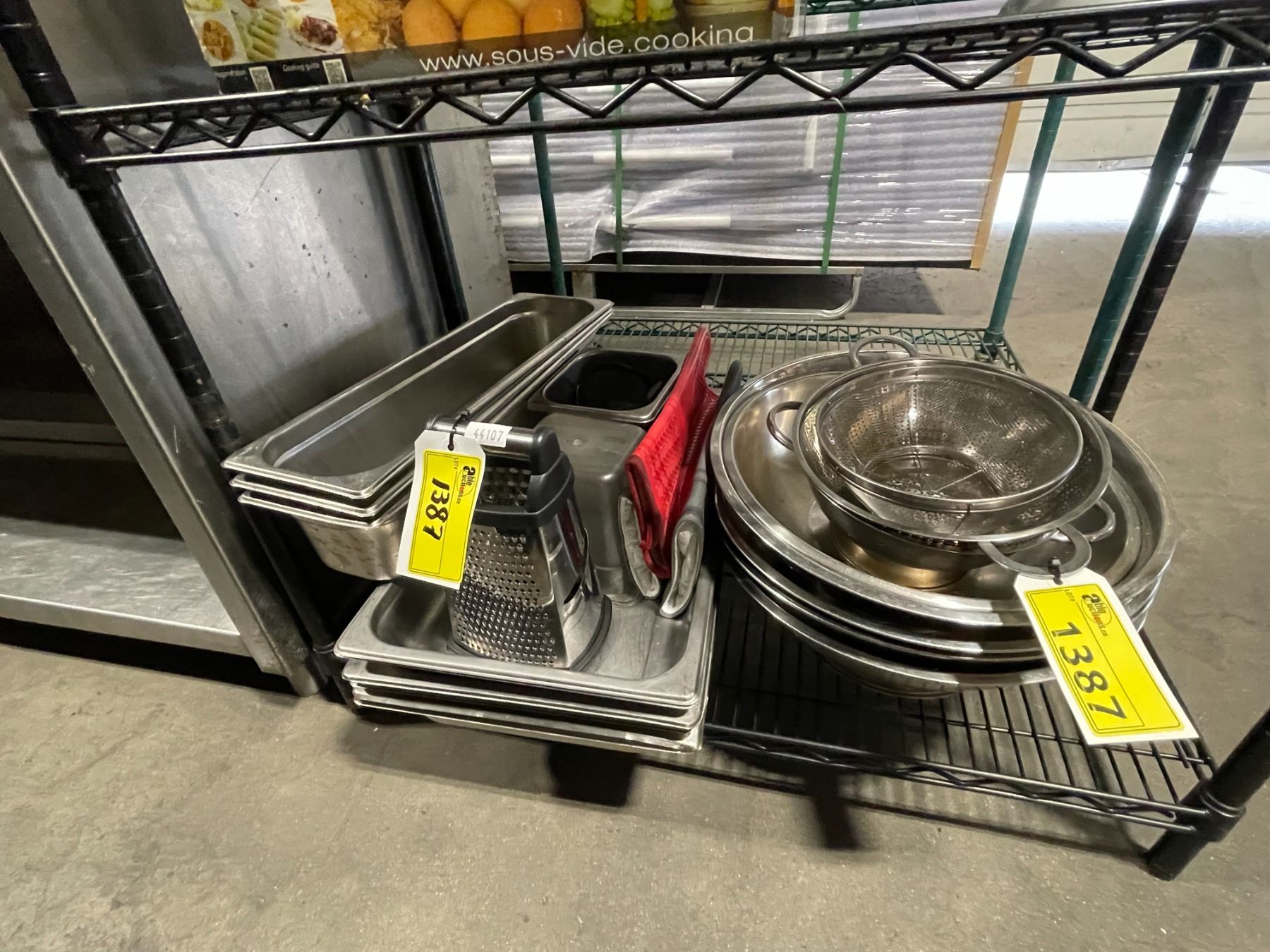 LARGE COMMERCIAL ASSORTED STAINLESS STEEL BOWLS, VARIOUS SIZE COLANDERS, ASSORTED STAINLESS INSERTS & CHEESE GRATERS